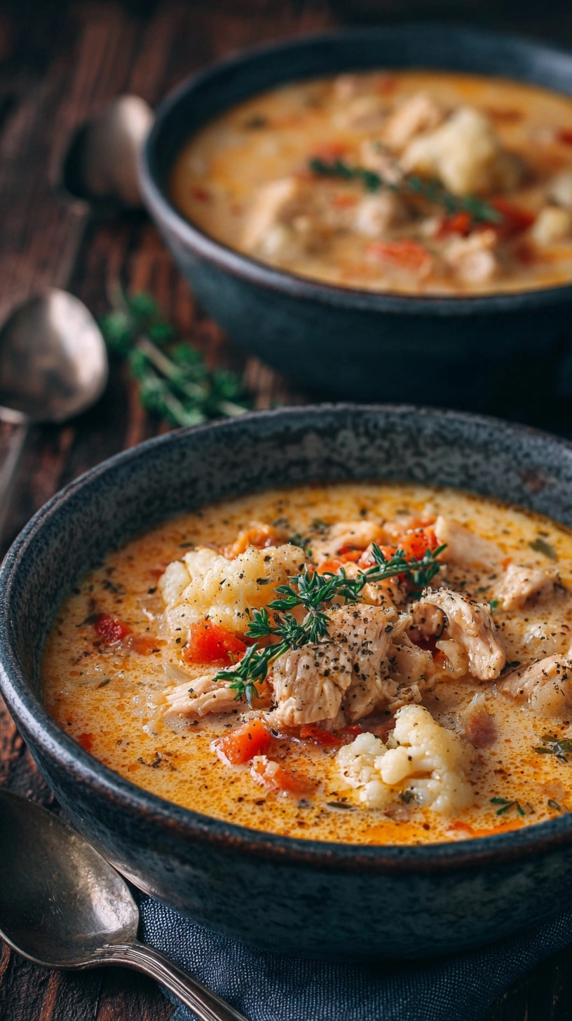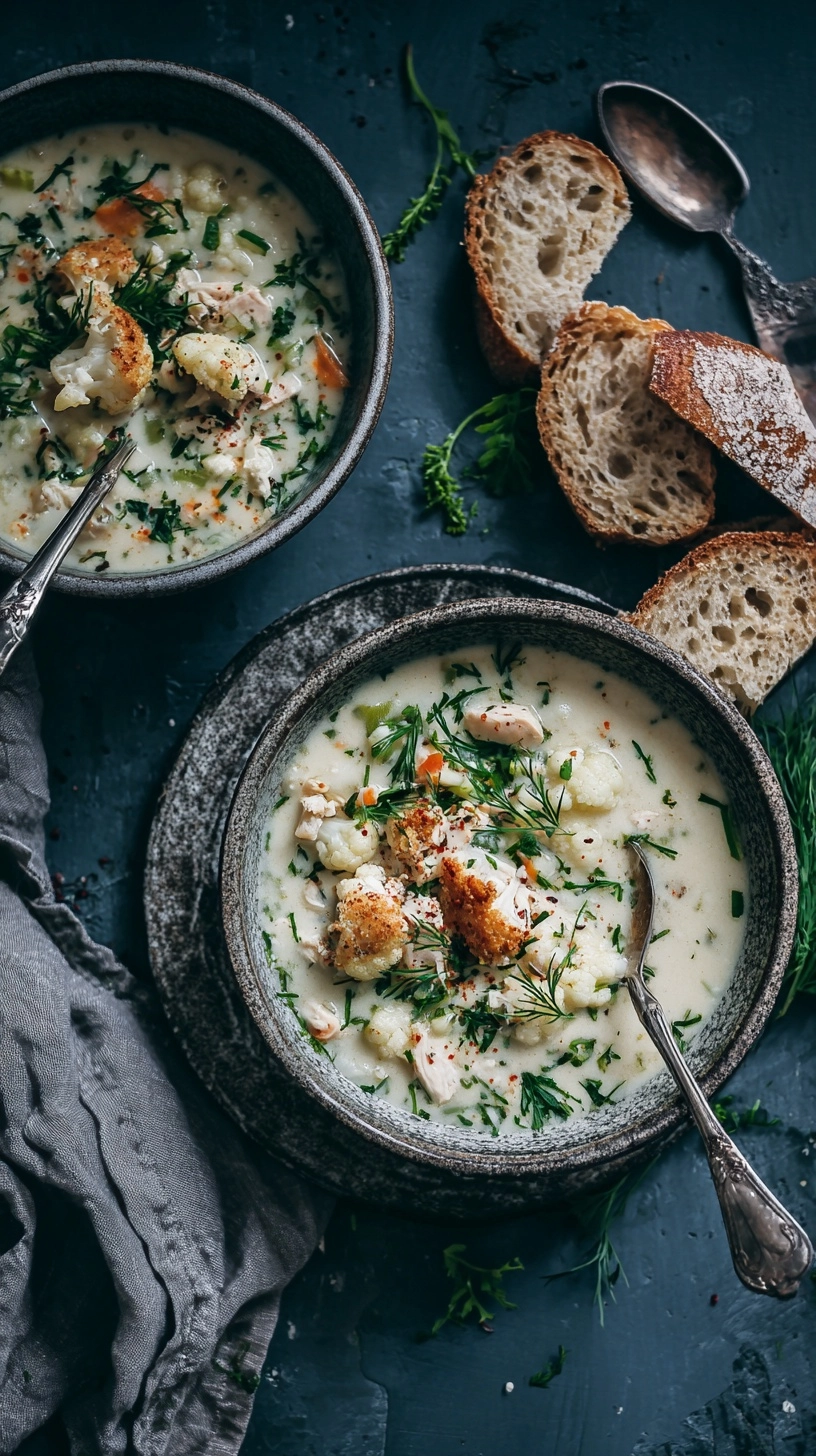 Elevate your 30-Minute Cauliflower Chicken Soup by serving it in warmed bowls with a drizzle of high-quality olive oil and a sprinkle of freshly cracked black pepper. Pair with crusty sourdough bread or grain-free crackers for textural contrast.