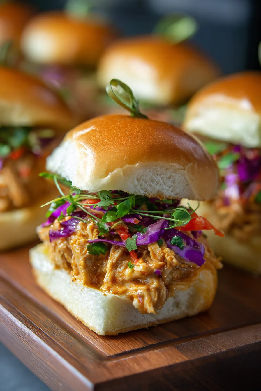 Store cooked chicken separately from buns and sauce to maintain optimal textures. Refrigerate chicken up to 3 days in airtight containers. The bang bang sauce keeps fresh for one week refrigerated. For meal prep, partially assemble sliders without sauce, storing components separately. Reheat chicken in a 350°F oven for 5-7 minutes to restore crispiness – avoid microwaving, which creates soggy textures.