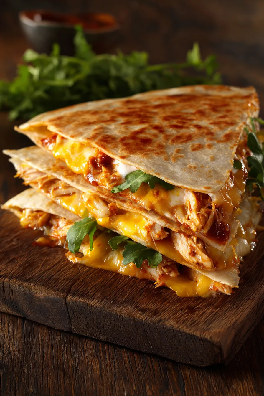 Properly stored BBQ chicken quesadillas maintain quality for up to 4 days in the refrigerator when wrapped individually in aluminum foil or stored in airtight containers. For optimal reheating, use a skillet over medium-low heat for 2-3 minutes per side to restore crispiness – avoid microwaving which creates soggy tortillas. The cooked BBQ chicken filling can be prepared up to 3 days ahead and stored separately. For longer storage, freeze assembled but uncooked quesadillas for up to 3 months, cooking directly from frozen with an additional 2-3 minutes per side.