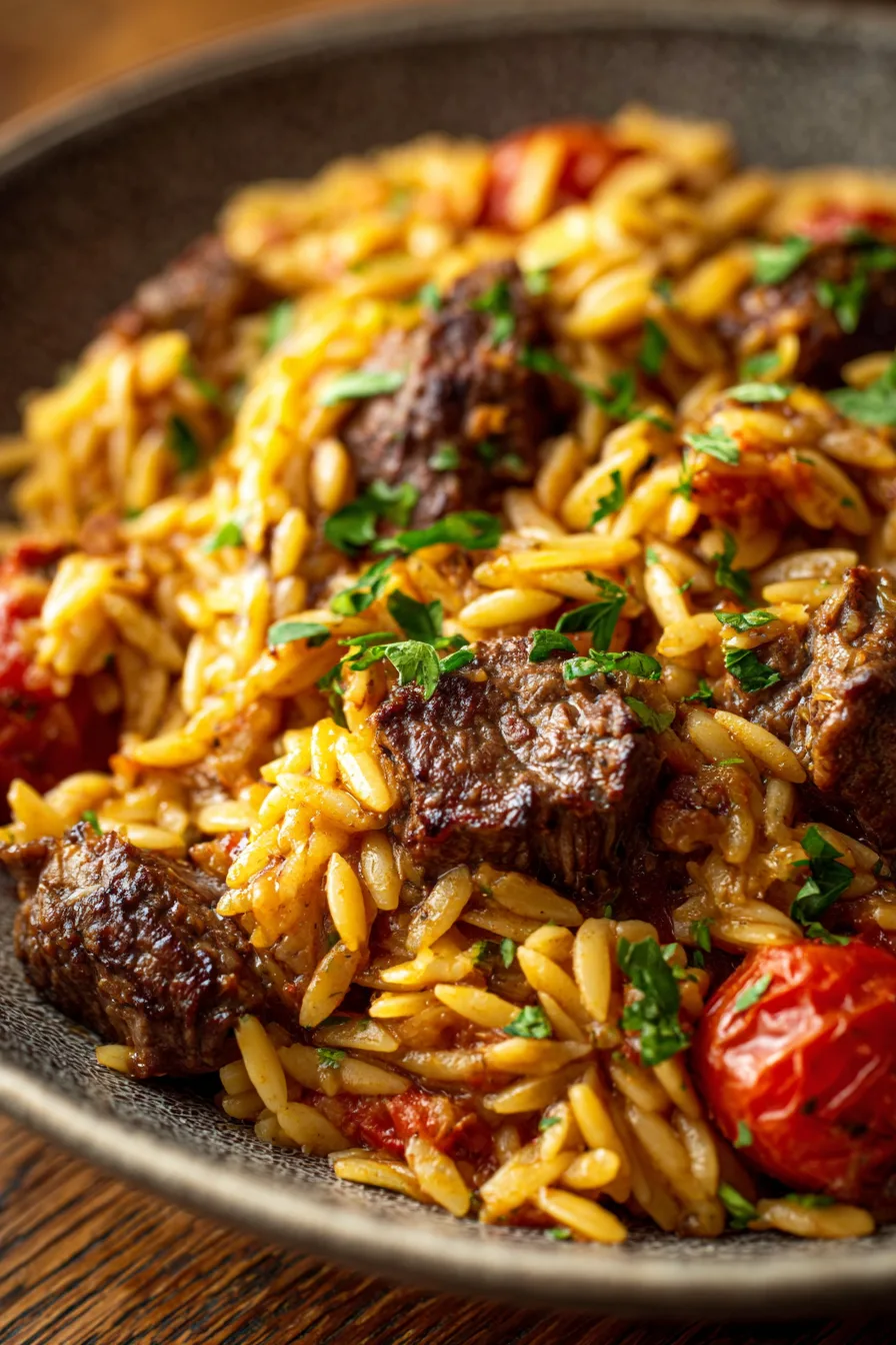 This dish provides excellent protein content and essential minerals, particularly iron from the beef and calcium from the feta cheese. The orzo contributes complex carbohydrates for sustained energy.