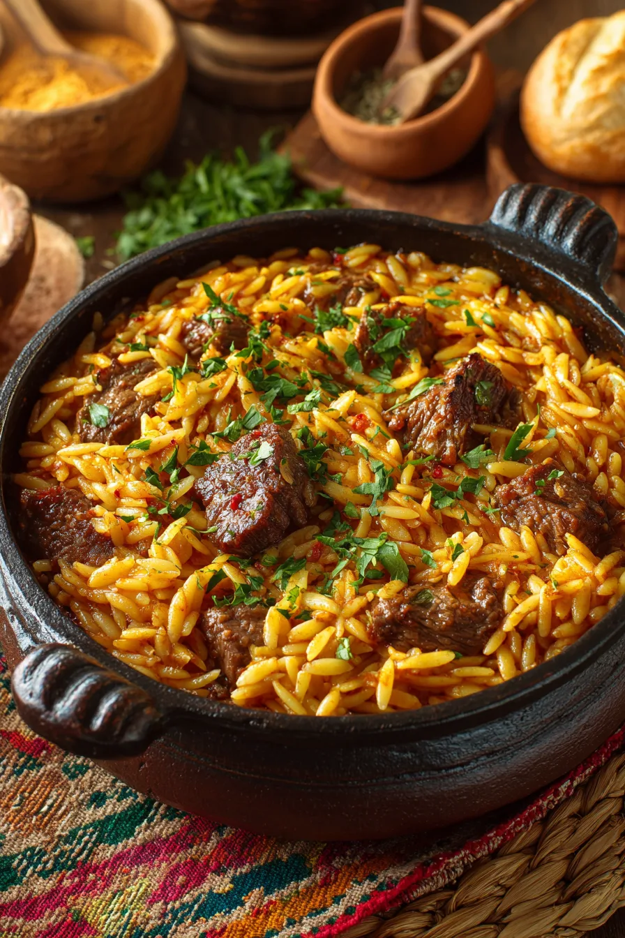 Did you know that most of home cooks avoid attempting traditional Greek recipes because they believe they’re too complex? The truth is, Beef Giouvetsi (Greek Beef Orzo Pasta) breaks this misconception entirely. This beloved comfort dish from Greece combines tender beef, perfectly cooked orzo pasta, and aromatic tomatoes in a single pot, delivering restaurant-quality results with surprisingly simple techniques. What makes this recipe particularly fascinating is how it achieves its signature depth of flavor through a methodical layering process that takes just 90 minutes – defying the common belief that authentic Greek cuisine requires all-day preparation.