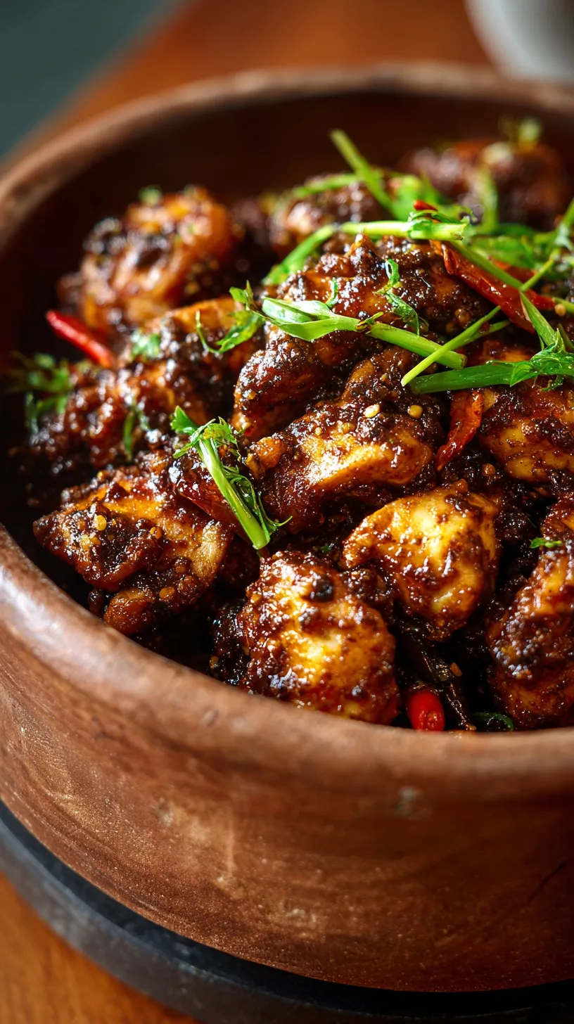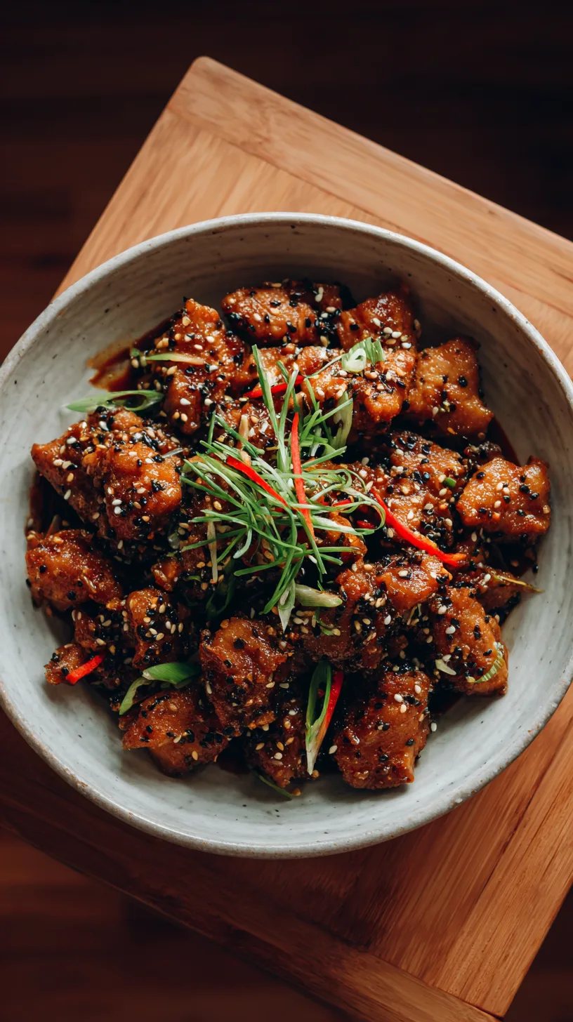 Create an impressive dinner party presentation by garnishing with fresh cilantro, sliced scallions, and a sprinkle of toasted sesame seeds. The visual contrast elevates this homestyle dish to restaurant presentation standards.