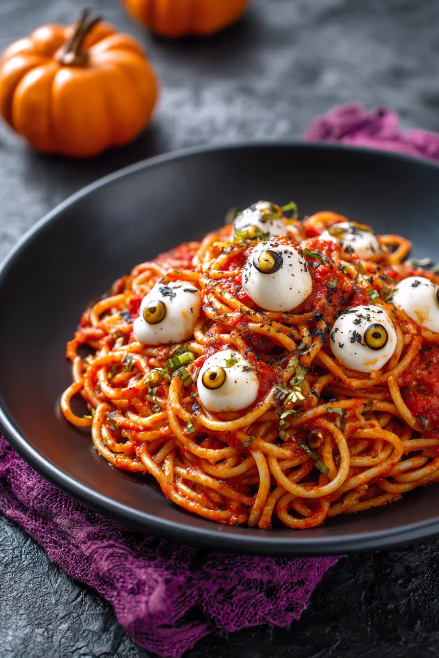 Did you know that more than half of families struggle to create memorable Halloween dishes that are both spooky and delicious? While store-bought Halloween treats dominate party tables, homemade creations leave lasting impressions that guests talk about for years. This Bloody Spaghetti with Mozzarella Eyeballs Halloween Pasta transforms ordinary ingredients into a spine-chilling masterpiece that’s surprisingly simple to create. Forget expensive Halloween decorations – this ghoulish pasta dish serves as both dinner and entertainment, combining rich marinara “blood” with creamy mozzarella “eyeballs” that will have your guests screaming for seconds.