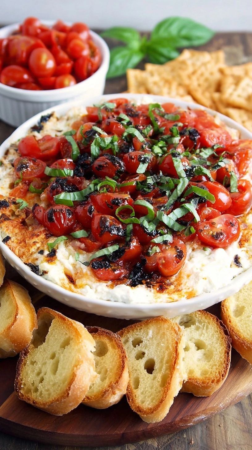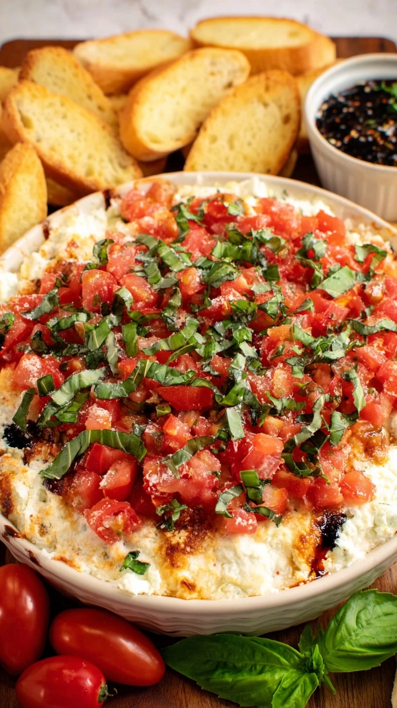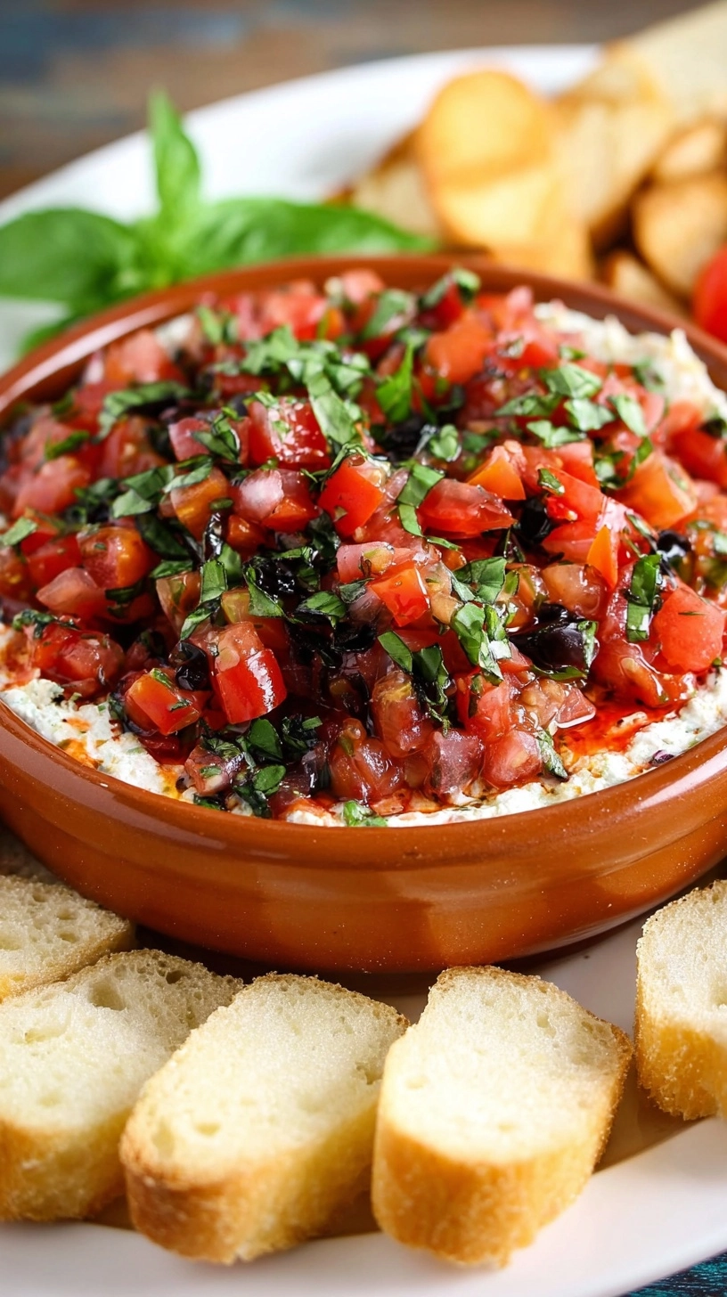 Transfer your bruschetta dip to a serving bowl, cover with plastic wrap, and refrigerate for at least 30 minutes. This chilling period allows flavors to meld beautifully, creating the signature taste that makes this dip irresistible.
