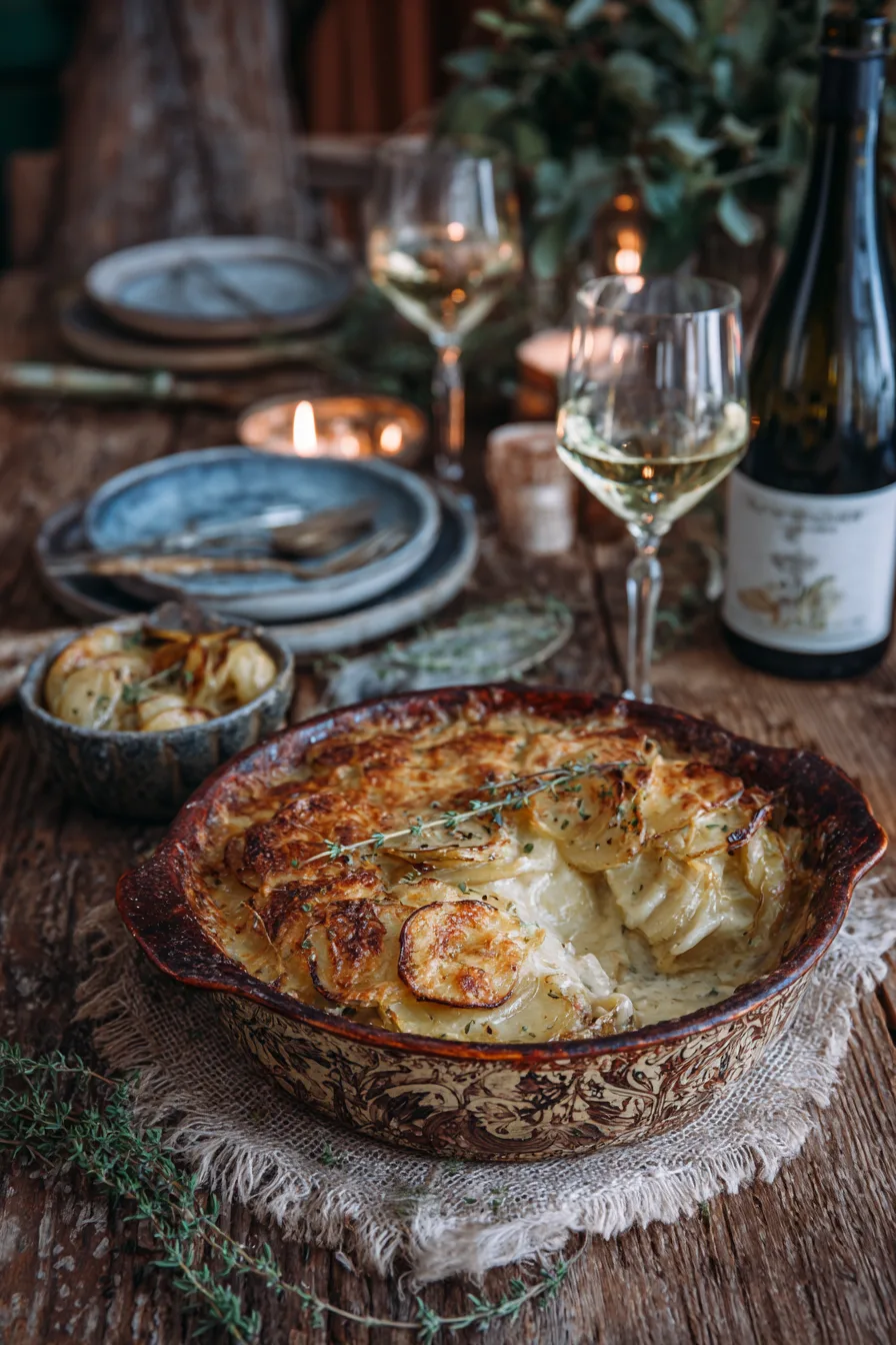 Cover tightly with foil and bake for 45 minutes. Remove foil and continue baking for 20 minutes until the top is golden brown and vegetables are fork-tender. Let rest for 10 minutes before serving – this crucial step allows the gratin to set properly and prevents a soupy consistency.