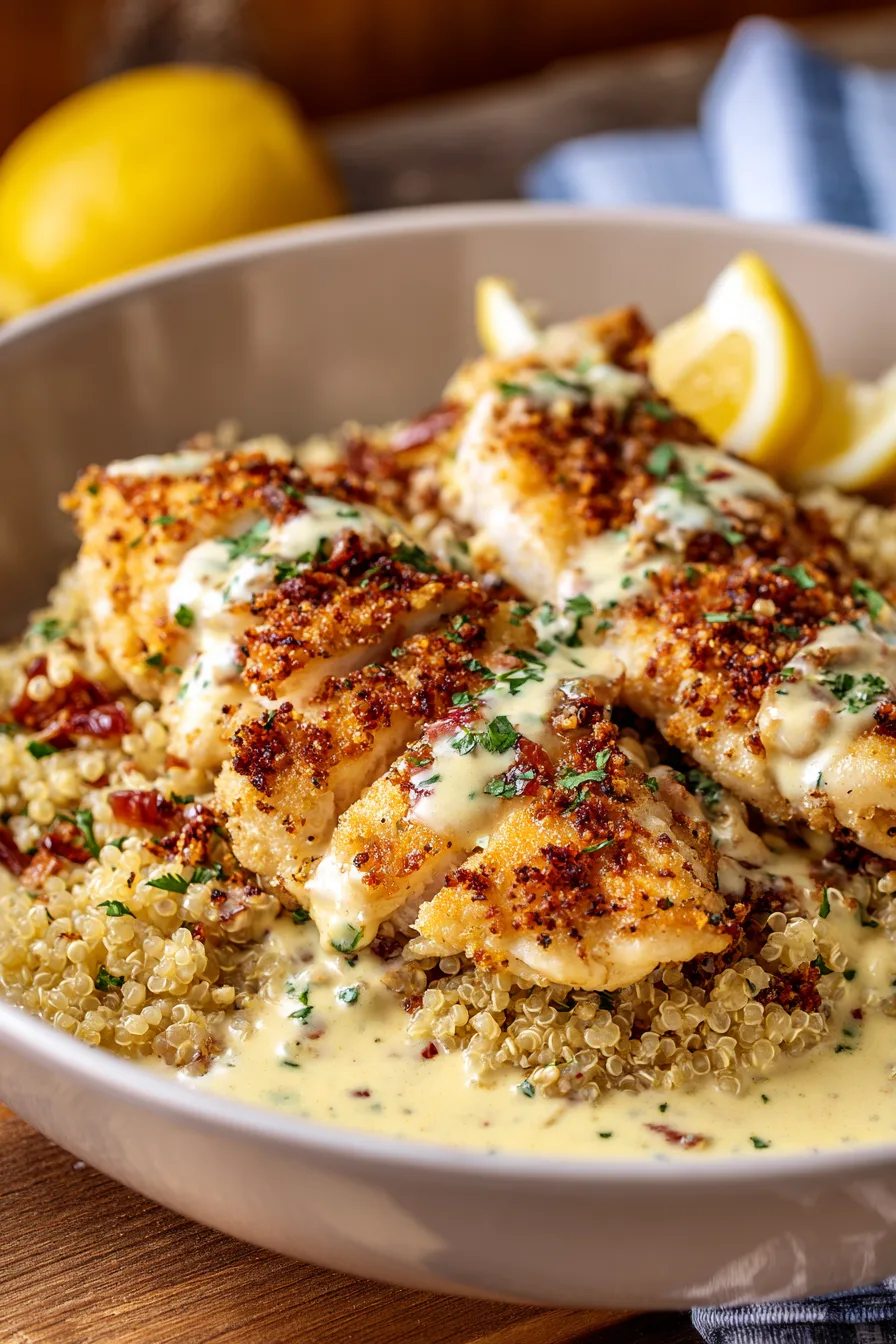 Pair your Comforting Lemon Chicken Romano for Family with creamy garlic mashed potatoes or herb-roasted vegetables for a complete meal that satisfies all palates. The bright lemon flavors complement steamed broccoli beautifully, while the rich Romano coating pairs exceptionally well with a simple arugula salad dressed with olive oil and balsamic vinegar. For special occasions, serve over angel hair pasta with extra lemon butter sauce for an elegant presentation that takes just 5 additional minutes.