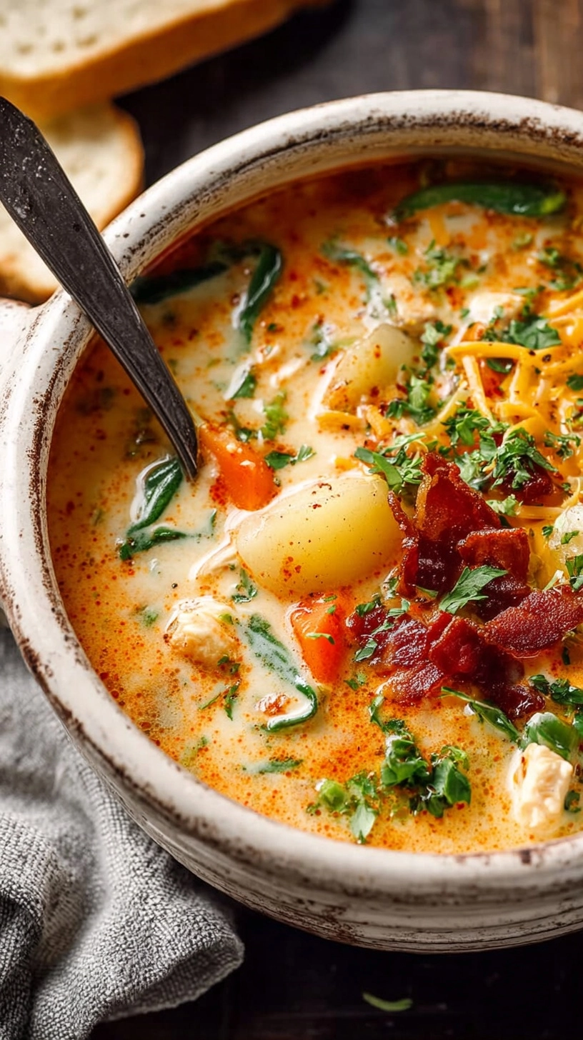 Serve this warming soup in heated bowls alongside crusty whole grain bread or homemade cornbread for dipping. A dollop of Greek yogurt adds creamy richness while boosting protein content. For elegant presentation, garnish with microgreens or a swirl of high-quality olive oil.