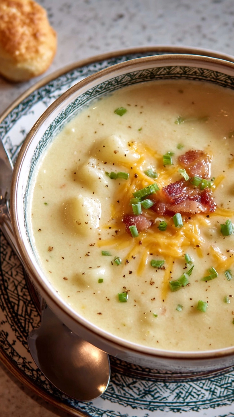 Serve your crock pot potato soup in warm bowls topped with crispy bacon bits, sharp cheddar, and fresh chives. Pair with crusty sourdough bread for dipping – the contrast of textures creates an unforgettable experience.