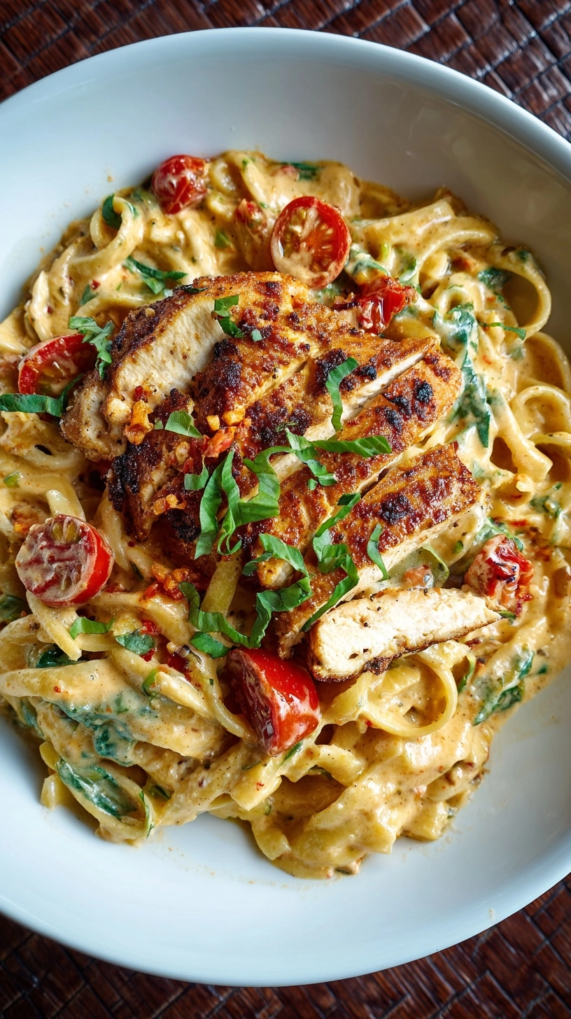 Elevate your Creamy Cajun Chicken Pasta Recipe presentation with these restaurant-worthy serving suggestions that enhance both visual appeal and flavor complexity. Serve over a bed of fresh arugula for peppery contrast, or alongside warm, crusty French bread to soak up every drop of that luscious sauce. Garnish with additional fresh herbs like chives or green onions, and a sprinkle of extra Parmesan cheese. For entertaining, consider serving family-style in a large, shallow bowl with colorful bell pepper strips and cherry tomatoes arranged around the edges. Pair with a crisp garden salad dressed in lemon vinaigrette to balance the richness, or roasted asparagus for an elegant vegetable accompaniment.