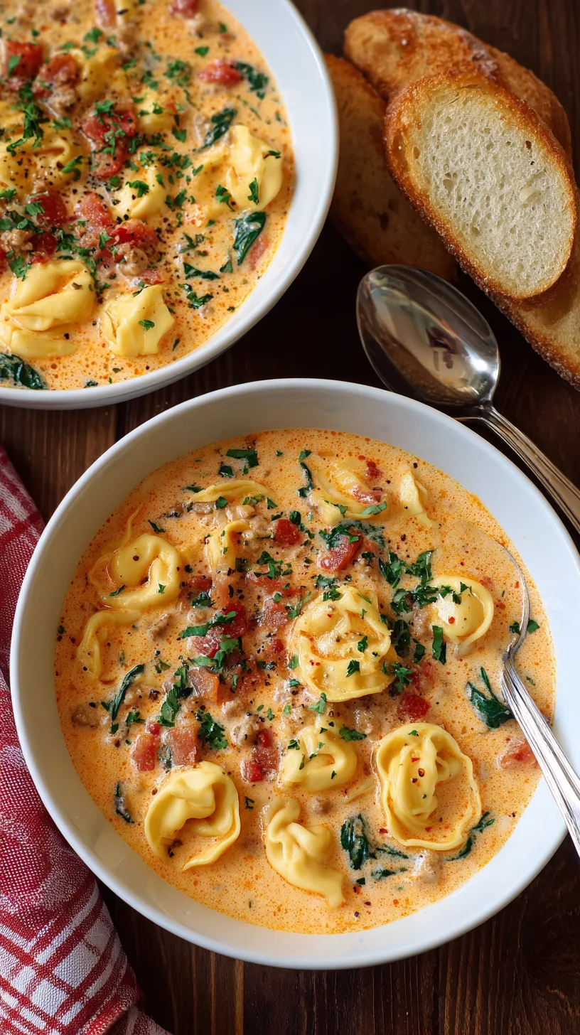 A: Absolutely! Brown the sausage and vegetables first, then transfer to your slow cooker with broth. Cook on low for 4-6 hours, adding tortellini and cream in the final 30 minutes.