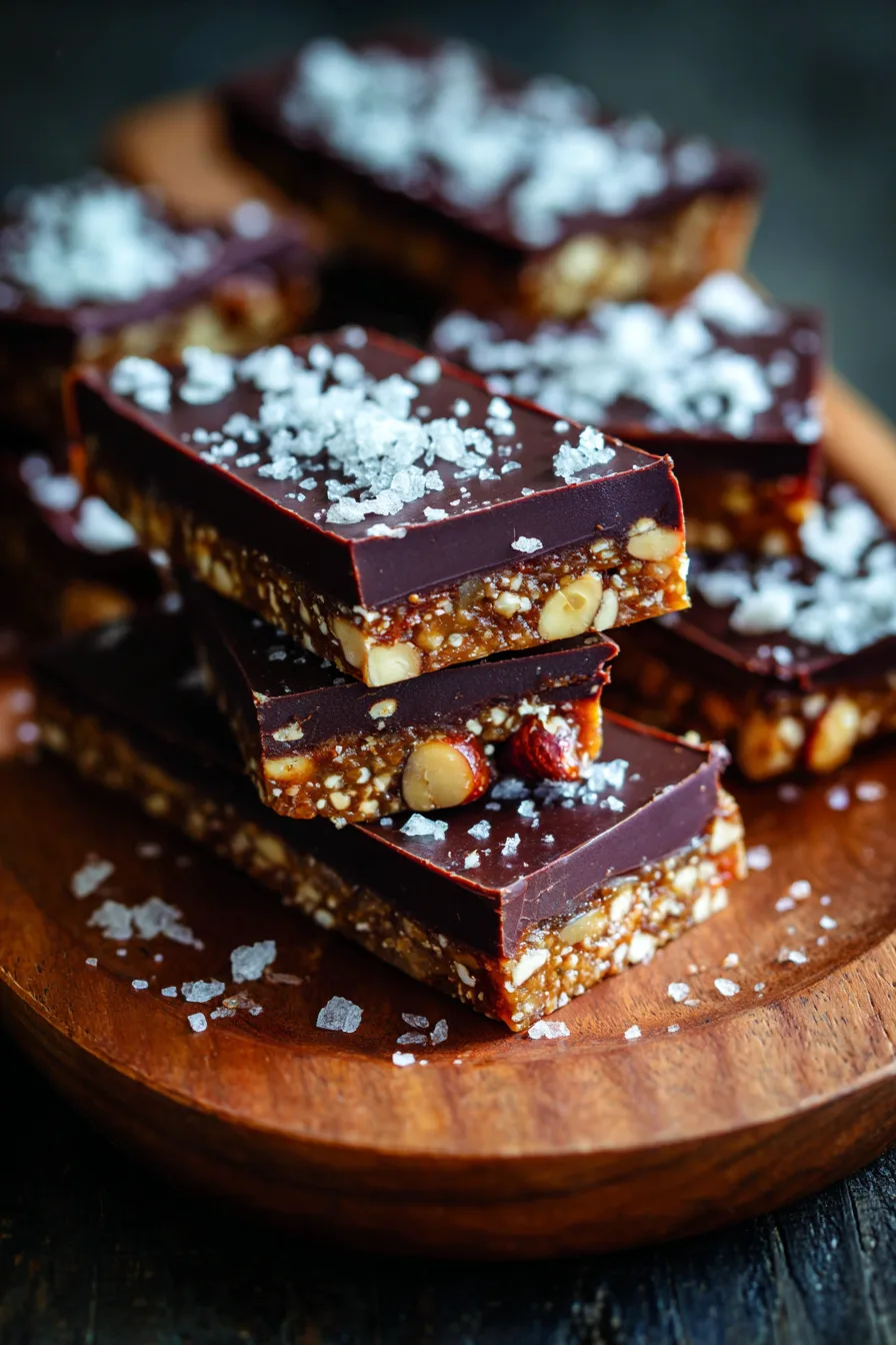 Store completed Dark Chocolate Sea Salt Nut Bars in an airtight container in the refrigerator for up to 10 days, separating layers with parchment paper to prevent sticking. For longer storage, wrap individual bars in wax paper and freeze for up to 3 months – they remain sliceable even when frozen. Room temperature storage works for 2-3 days in cooler climates, but refrigeration maintains optimal texture and prevents chocolate bloom. For meal prep enthusiasts, the nut base can be prepared and stored separately for 5 days before adding chocolate, allowing fresh chocolate application when needed.