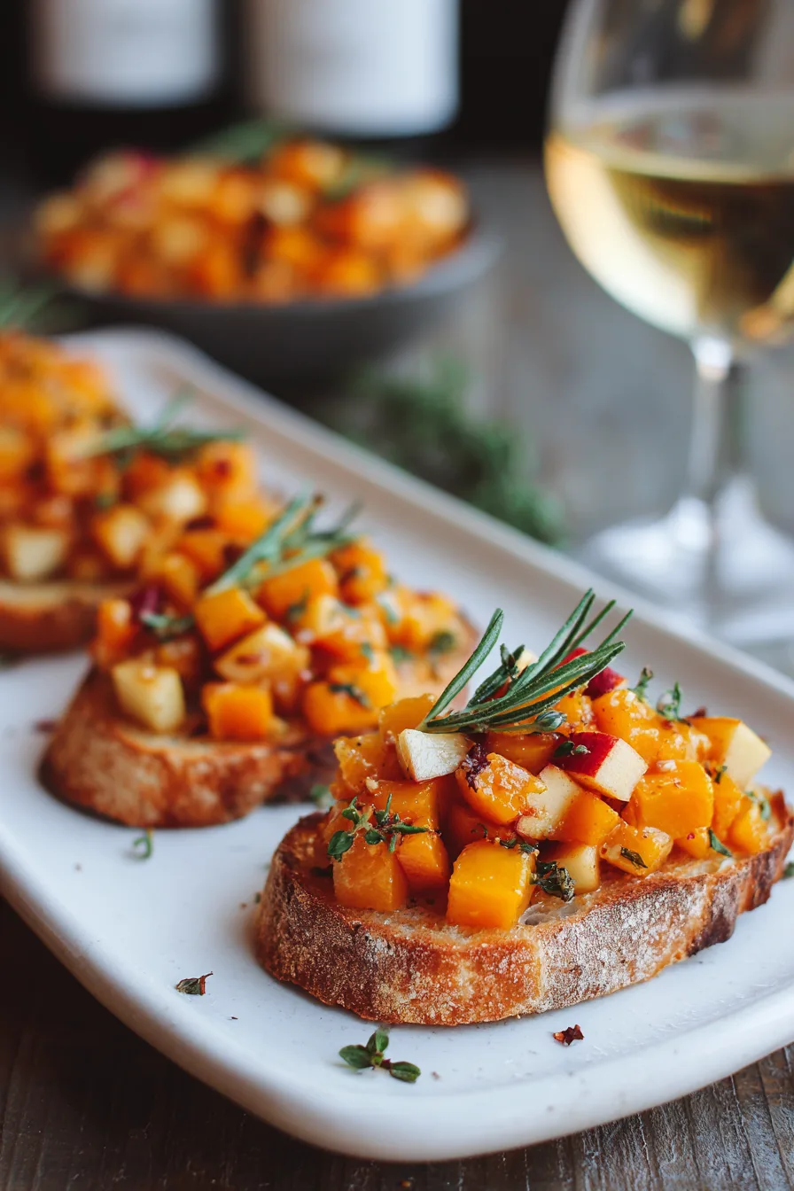 Serve this Delicious Fall Bruschetta with Butternut Squash and Apples as an elegant appetizer for fall dinner parties, holiday gatherings, or casual weekend brunches. Pair with a warm butternut squash soup for a cohesive seasonal menu, or arrange alongside other small plates like roasted beet salad and herb-crusted cheese. The bruschetta works beautifully as a light lunch when served with mixed greens dressed in apple cider vinaigrette. For entertaining, prepare toppings in advance and assemble just before serving to maintain optimal texture contrast.