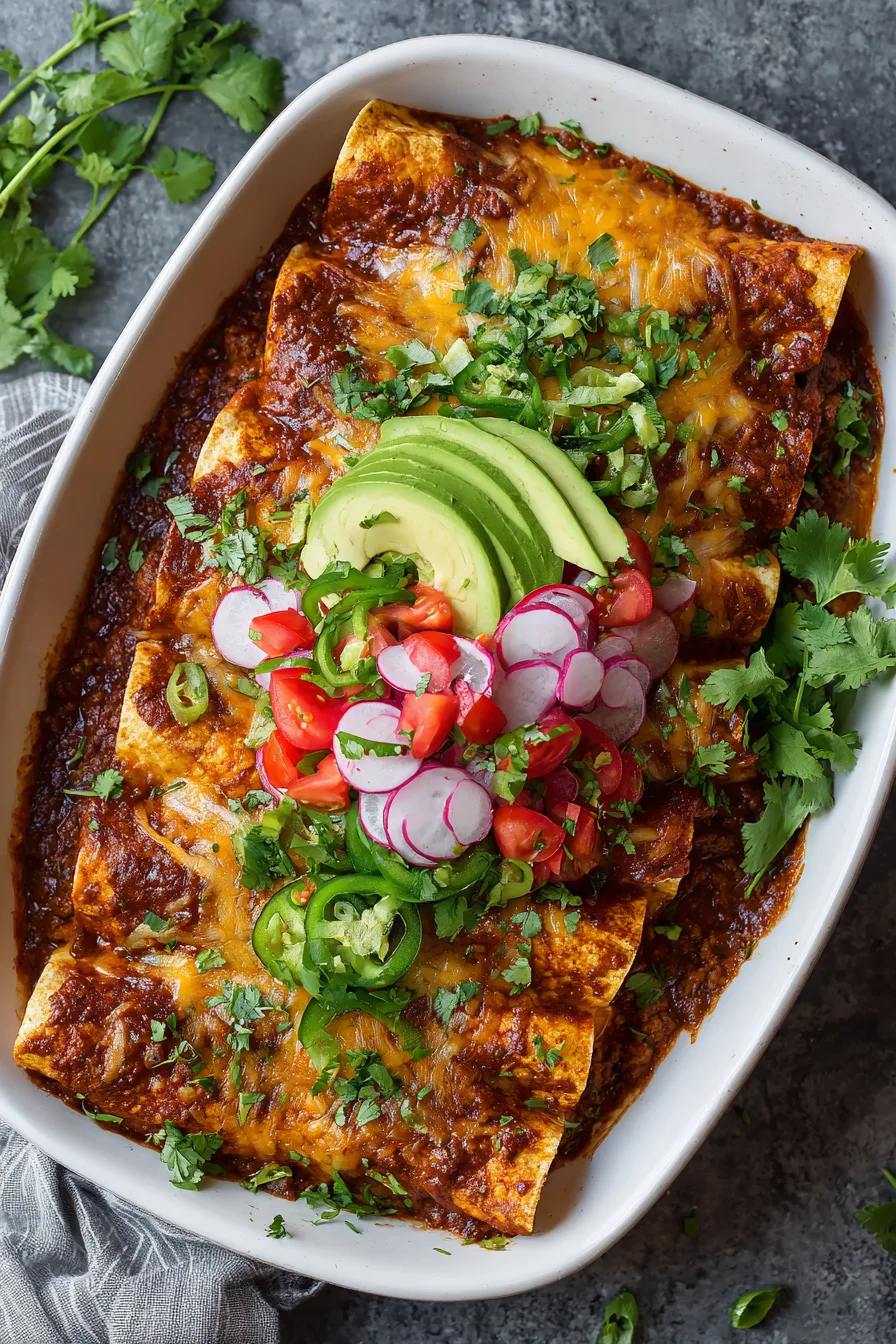 Refrigerate assembled but unbaked enchiladas for up to 24 hours, covered tightly with plastic wrap. This make-ahead approach actually improves flavor as ingredients meld together. When ready to serve, add 5 extra minutes to the baking time to account for cold starting temperature.