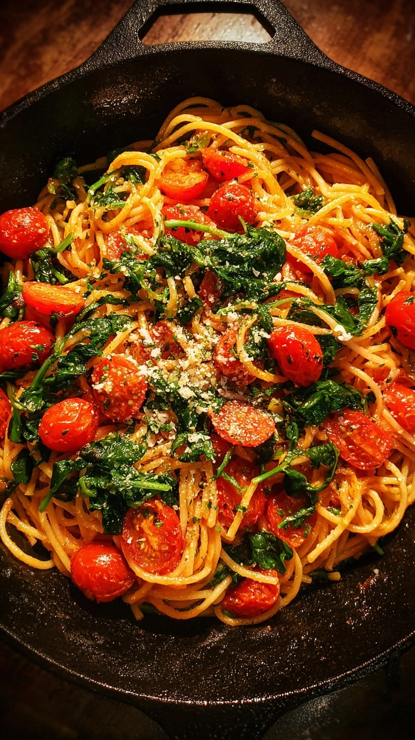 Remove from heat and stir in half the Parmesan cheese. Taste and adjust seasoning as needed. The residual heat will create a silky, restaurant-quality finish that makes this delicious spinach tomato pasta irresistible.
