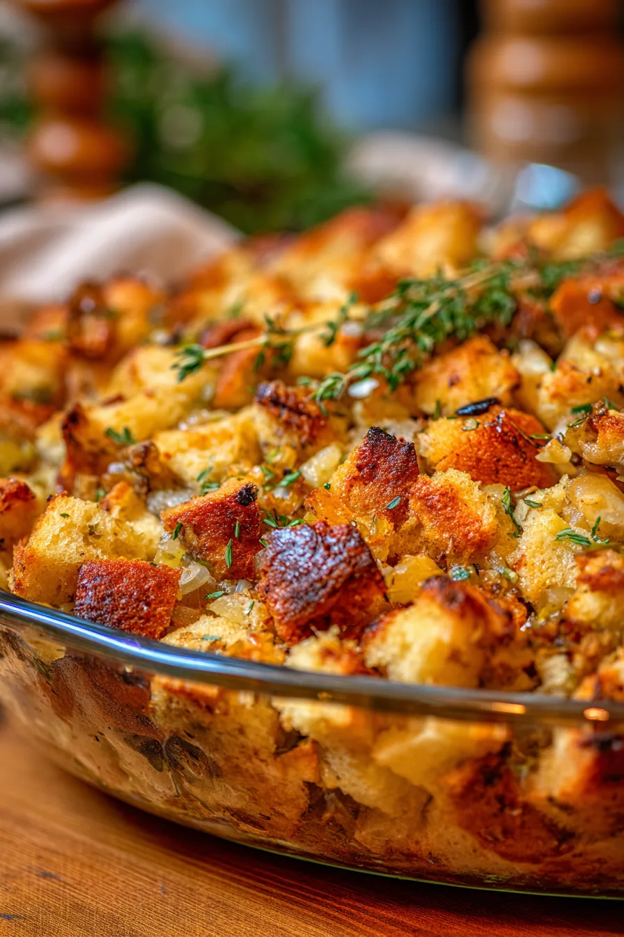 Refrigeration: Store leftover stuffing in airtight containers for up to 4 days. Reheat individual portions in the microwave with a splash of broth to restore moisture.