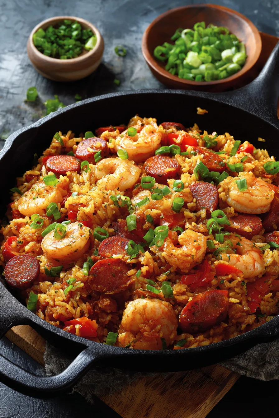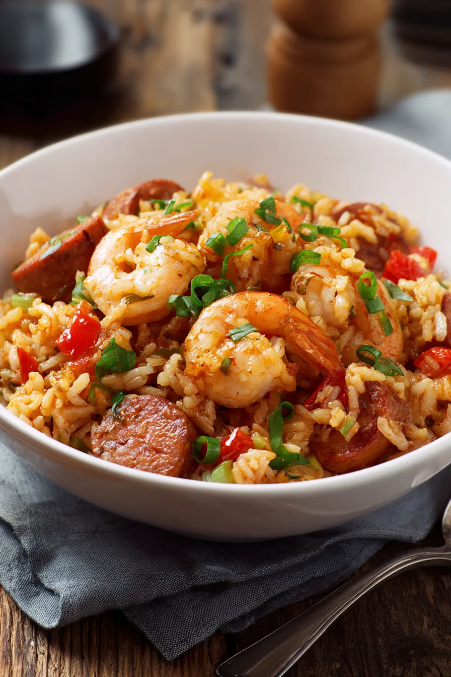 Present jambalaya in shallow bowls to showcase the colorful ingredients, garnished with fresh green onions and a lemon wedge. Serve alongside crusty French bread for authentic Louisiana-style dining, or pair with a simple green salad dressed in vinaigrette to balance the rich flavors.