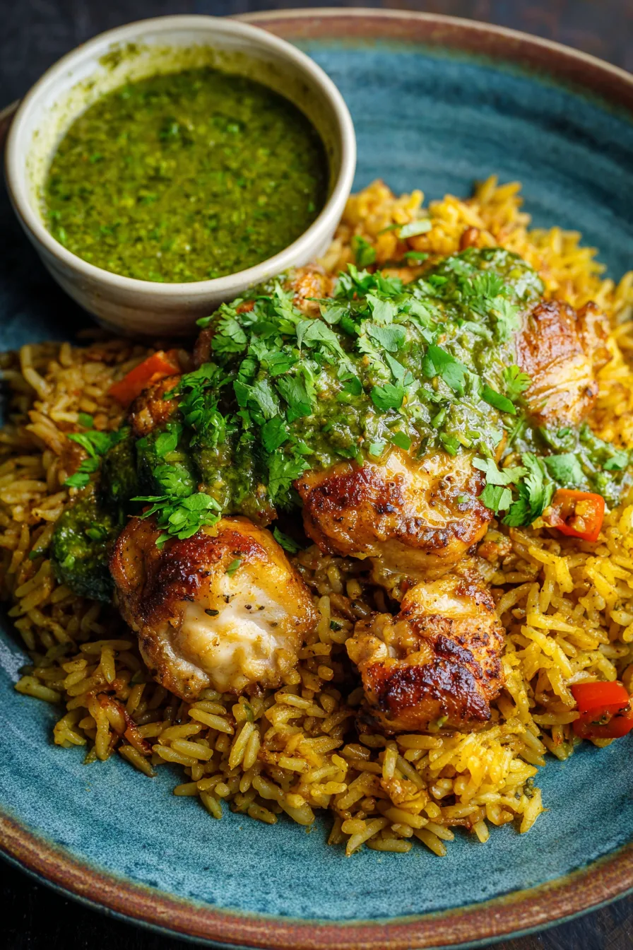 Don’t skip drying the chicken—wet chicken won’t brown properly, resulting in pale, less flavorful meat. Avoid lifting the pot lid during rice cooking, which releases essential steam and leads to unevenly cooked grains. Don’t use old cilantro for the green sauce; wilted herbs create a bitter, less vibrant flavor. Resist stirring the rice once liquid is added, as this releases starch and creates mushy texture. Finally, don’t rush the resting period—those final 10 minutes allow flavors to meld and rice to achieve perfect texture.