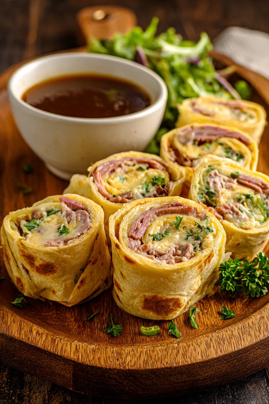 Present these French Dip Tortilla Roll Ups on rustic wooden boards alongside crispy sweet potato fries or a fresh garden salad with vinaigrette. For entertaining, create a DIY roll-up station where guests can customize their ingredients. Pair with homemade pickles or marinated vegetables to cut through the richness. These roll-ups also work beautifully for picnics when served at room temperature with the au jus in thermal containers for easy transport.