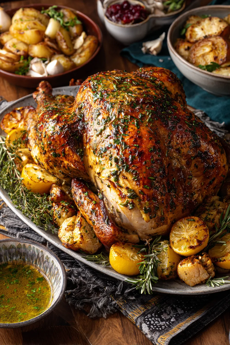 Present your Garlic Herb Butter Roast Turkey alongside roasted root vegetables that have absorbed the aromatic pan drippings. Create an elegant presentation by garnishing with fresh herb sprigs and lemon wedges. Pair with cranberry sauce enhanced with orange zest, or serve with homemade gravy prepared from the flavorful pan juices. For a modern twist, slice the turkey and arrange over mixed greens with pomegranate seeds and toasted nuts for a sophisticated salad presentation.