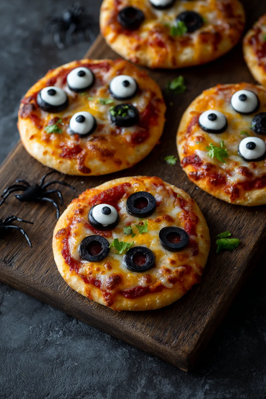 Present these Halloween Mini Pizzas – Kid-Decorated Eyeballs on black plates with dry ice effects (safely handled by adults) for maximum dramatic impact. Pair with “monster blood” smoothies made from strawberries and yogurt, or serve alongside “witch finger” carrots with hummus dip.