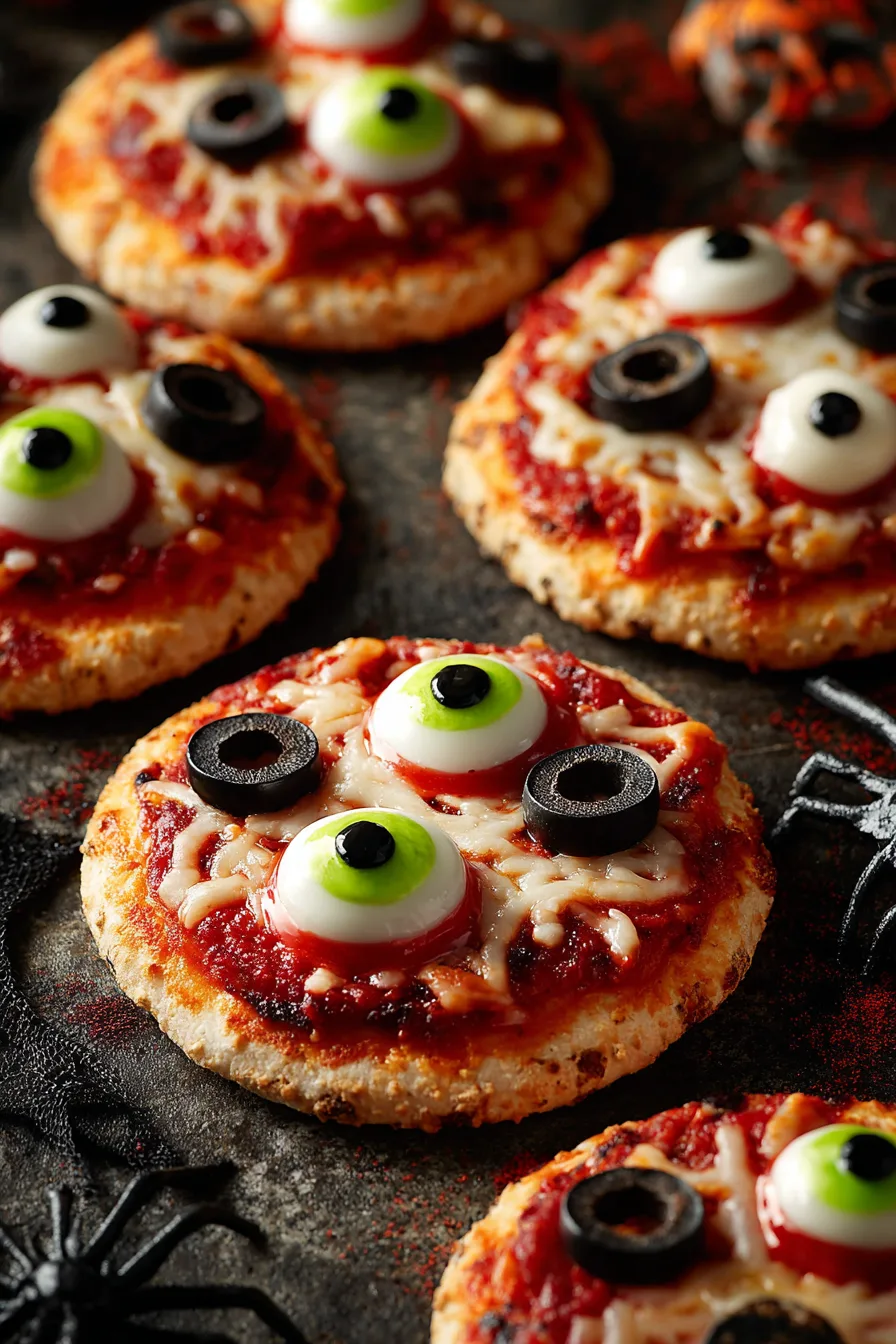Creating these spine-tingling Halloween Mini Pizzas – Kid-Decorated Eyeballs requires simple, kid-friendly ingredients that deliver maximum visual impact: