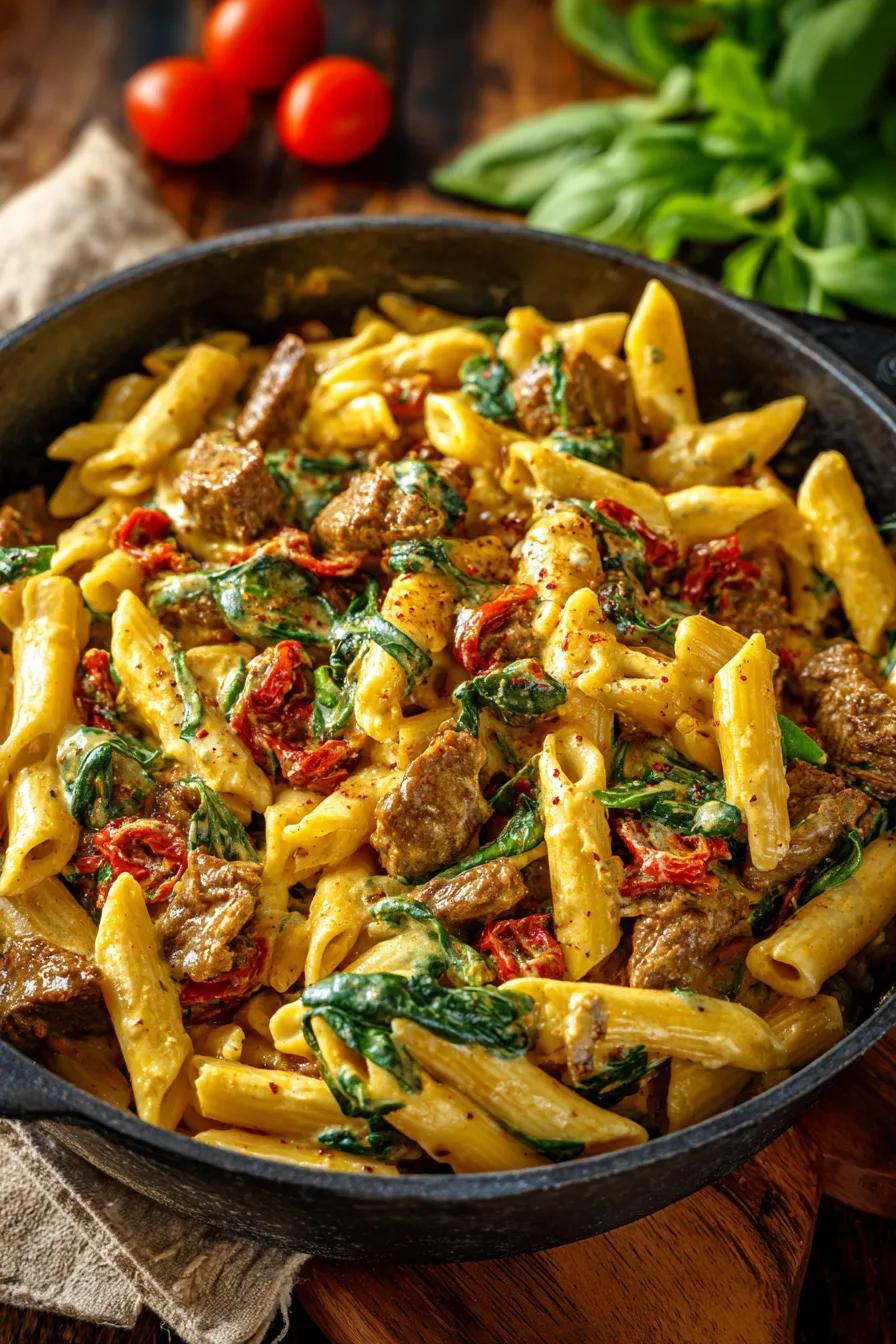 Transform this already nutritious high protein creamy beef pasta recipe into an even more health-conscious meal with these evidence-based modifications: