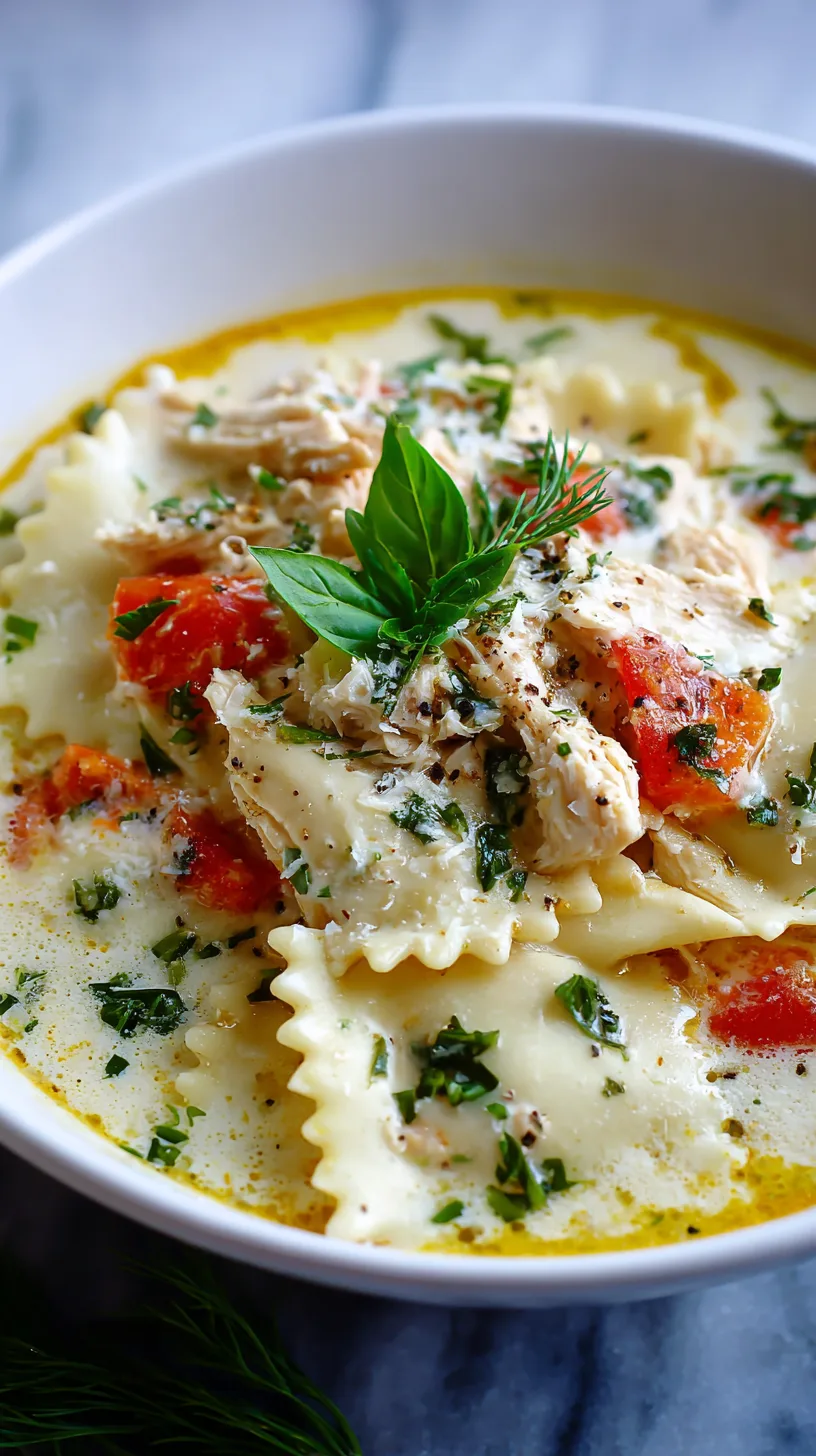 Elevate your white chicken lasagna soup presentation with these restaurant-inspired touches: