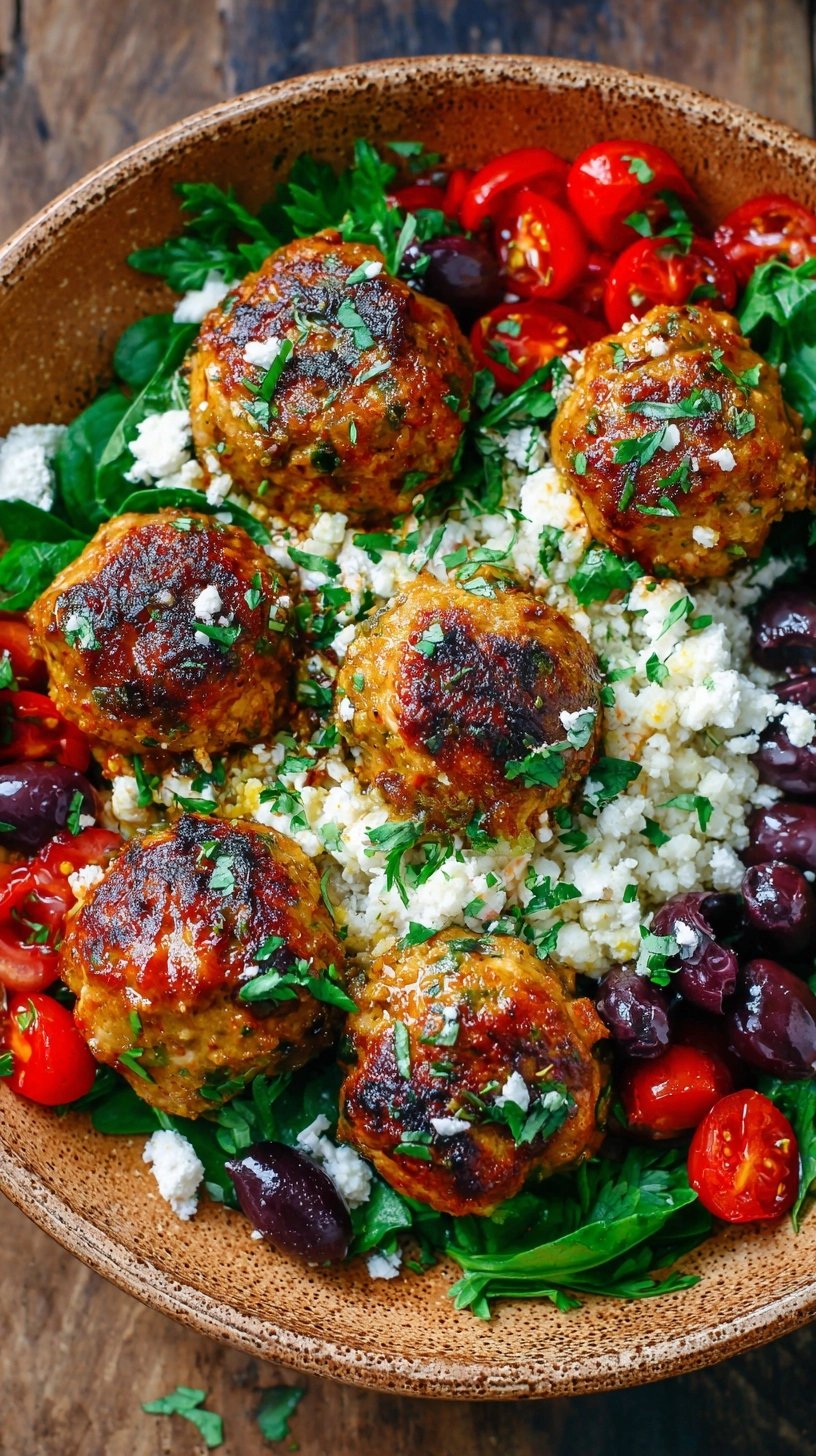 Serve these Mediterranean chicken meatballs over cauliflower rice for a complete low-carb meal, or pair with whole grain pasta for sustained energy. They’re exceptional over zucchini noodles with a sprinkle of nutritional yeast for added B-vitamins.