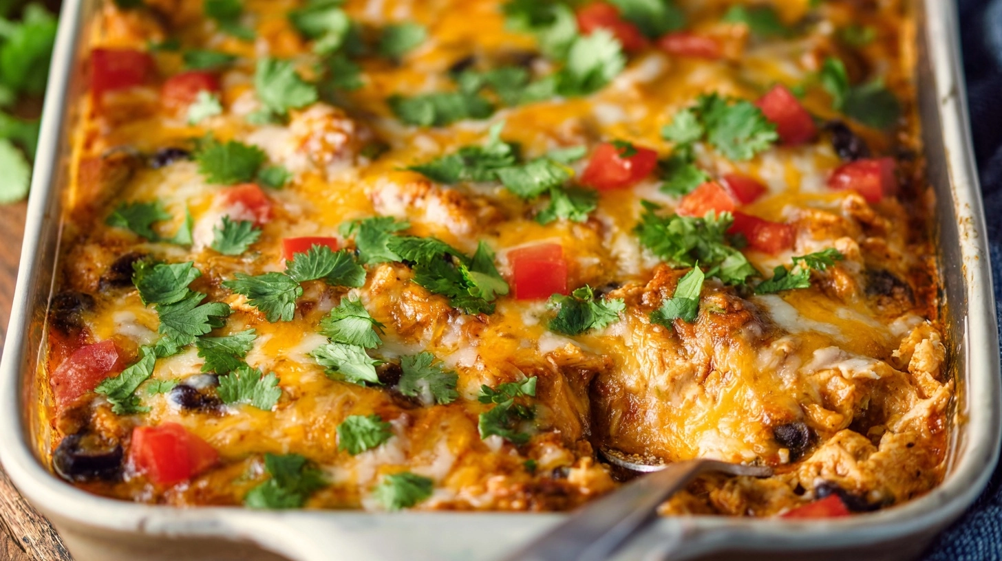 Arrange half of the tortilla strips over the chicken mixture, then sprinkle with half of the Mexican cheese blend. Add the remaining chicken mixture, top with remaining tortillas, and finish with the rest of the cheese. This layering technique ensures every bite has the perfect balance of protein, vegetables, and cheesy goodness.