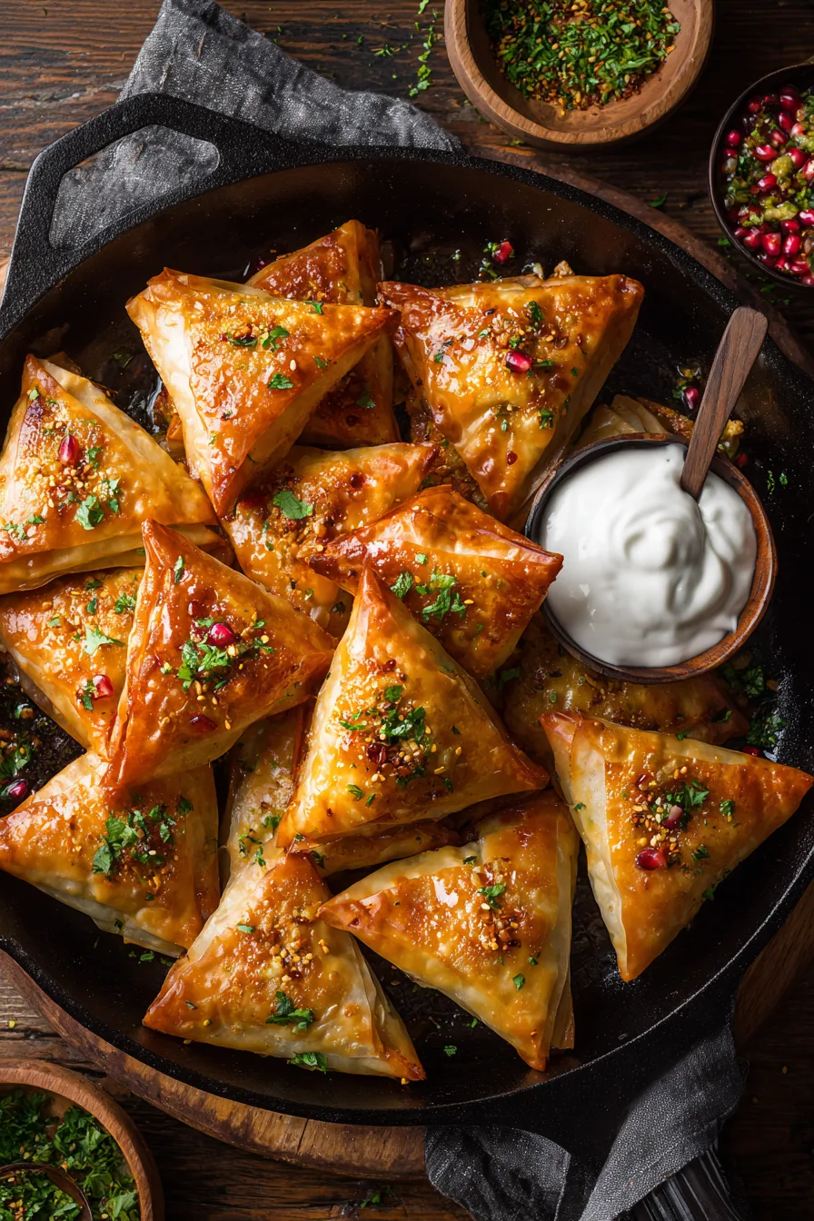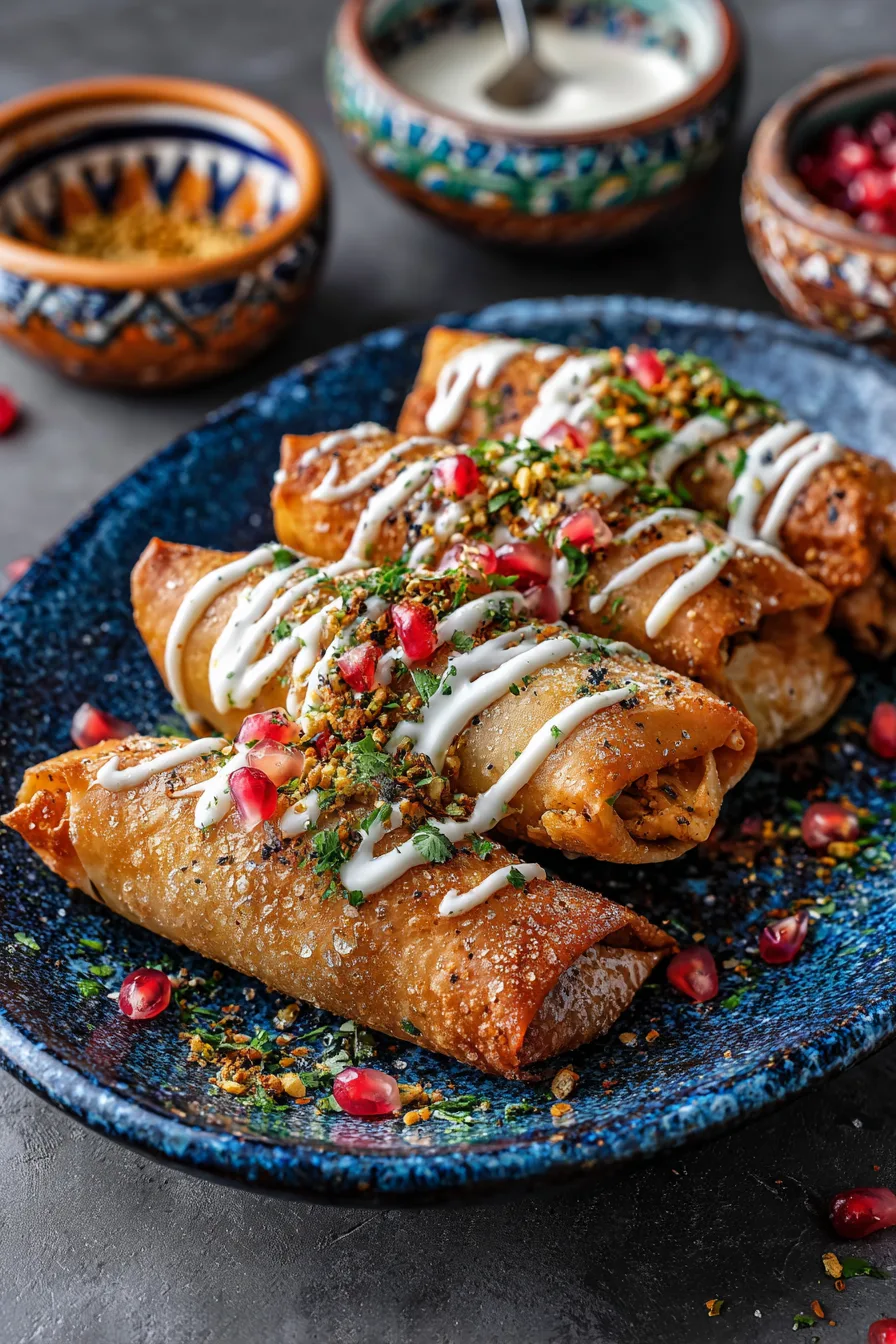 Serve your Moroccan Spiced Chicken Briouats on a platter garnished with fresh mint leaves and pomegranate seeds for authentic presentation. Pair with a cooling cucumber yogurt sauce or harissa-spiced hummus. These briouats shine as appetizers for dinner parties, lunch box additions, or light dinner paired with a mixed greens salad dressed with lemon vinaigrette.