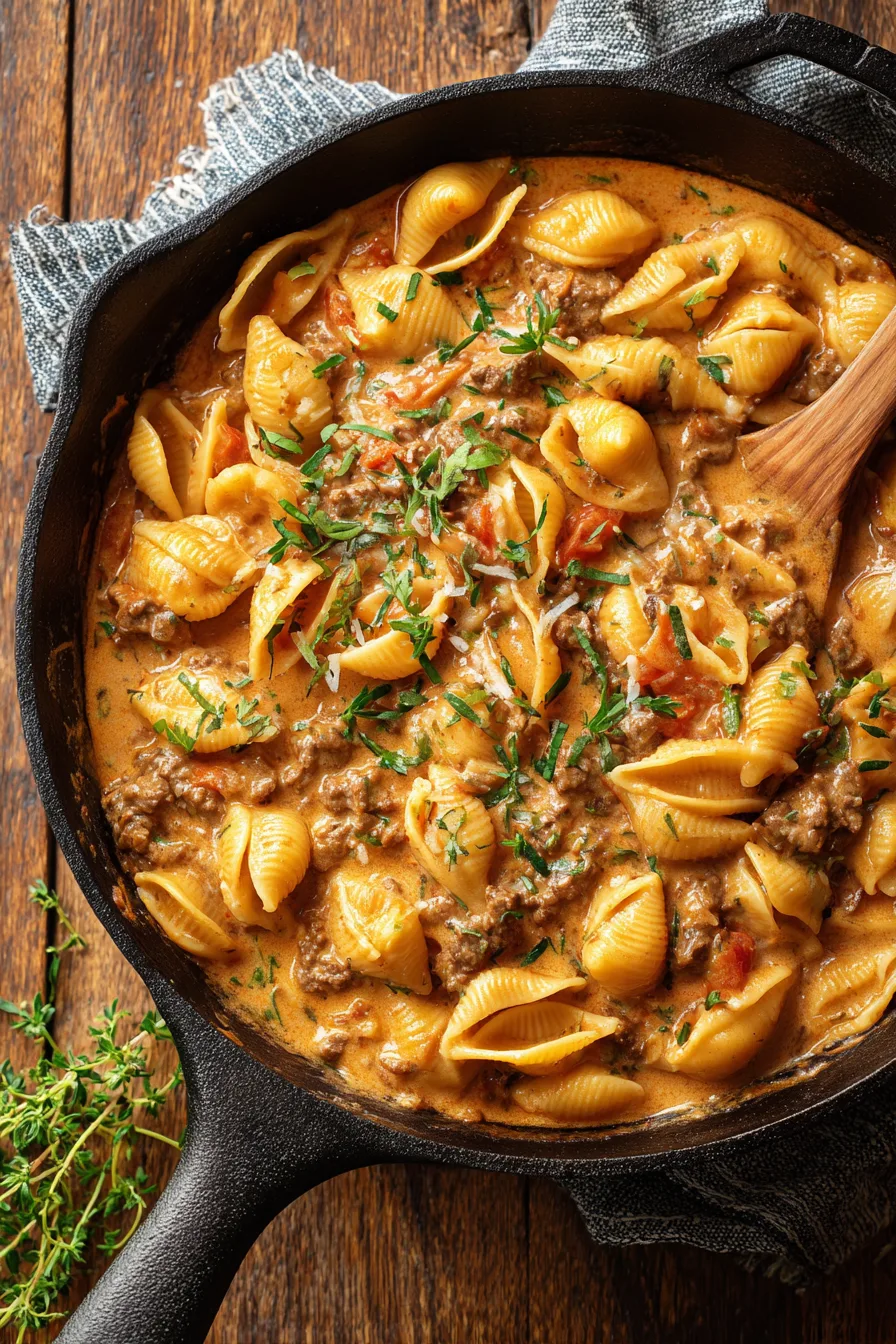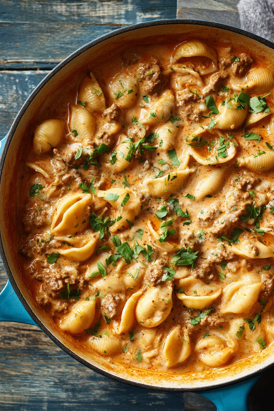 This efficient One-Pot Creamy Beef and Shells recipe delivers maximum flavor with minimal time investment: