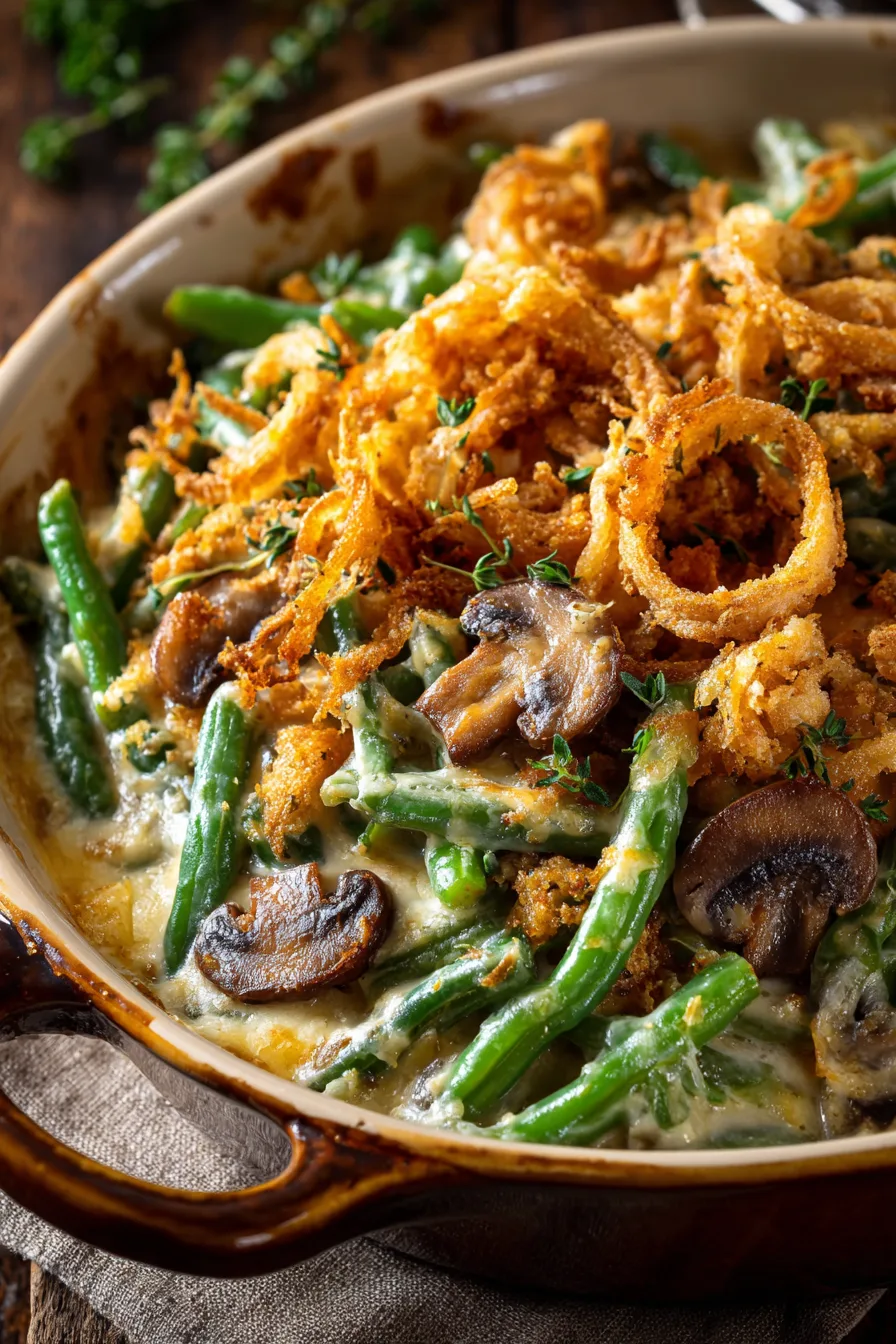 Mix the reserved French fried onions with panko breadcrumbs and melted butter. Sprinkle this mixture over the casserole and bake for an additional 5-10 minutes until the topping is golden brown and crispy.