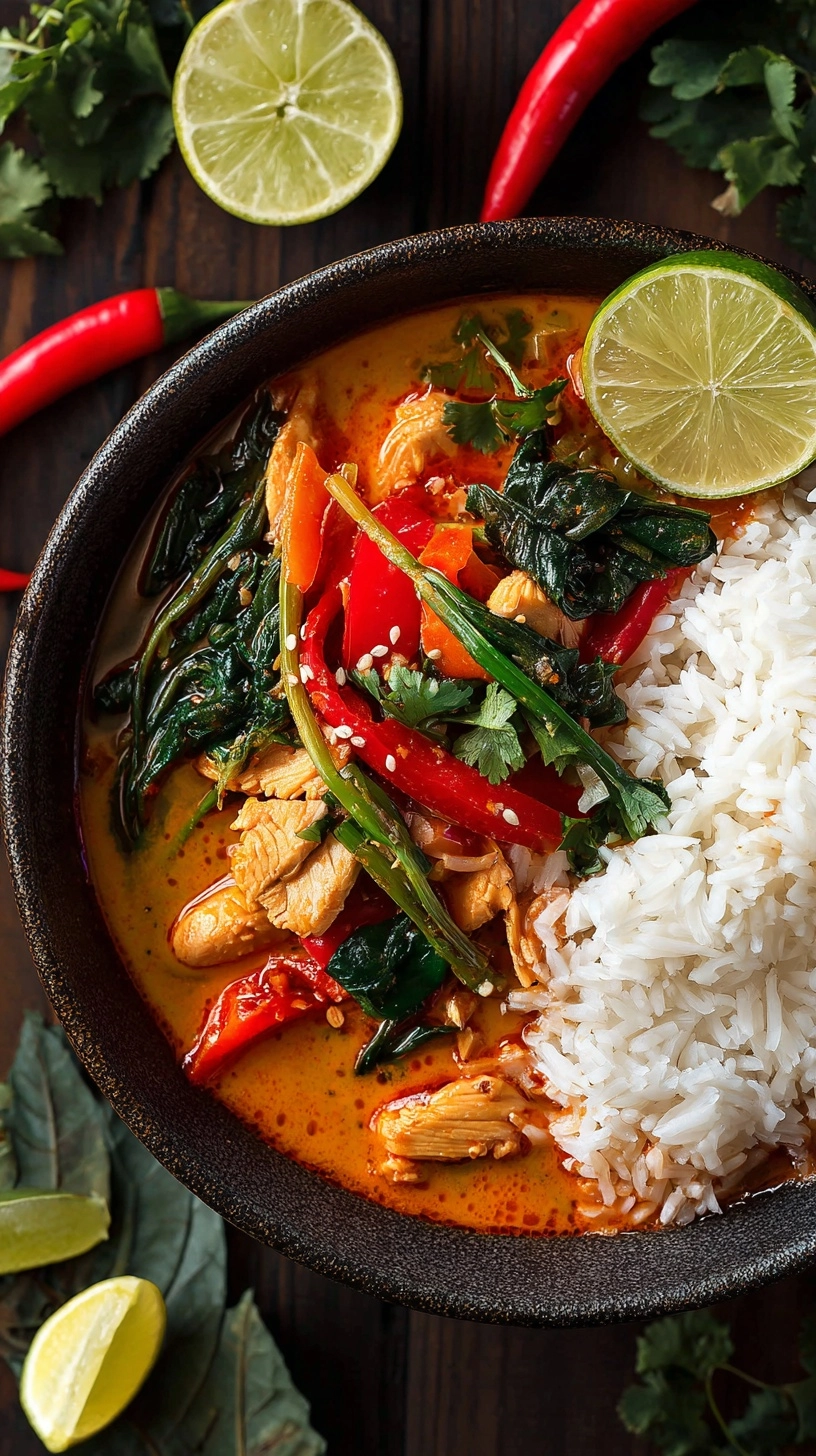 Transform this Thai Red Curry Chicken 30 Minute Meal into a lighter version by substituting light coconut milk for full-fat, reducing calories by approximately nearly some of while maintaining creaminess. Replace chicken thighs with breast meat to lower fat content, or use extra-firm tofu for a plant-based protein option. Increase vegetable content by adding cauliflower florets, snap peas, or baby corn to boost fiber and micronutrients. For those monitoring sodium, use low-sodium soy sauce instead of fish sauce and reduce curry paste quantity while compensating with fresh herbs and ginger.
