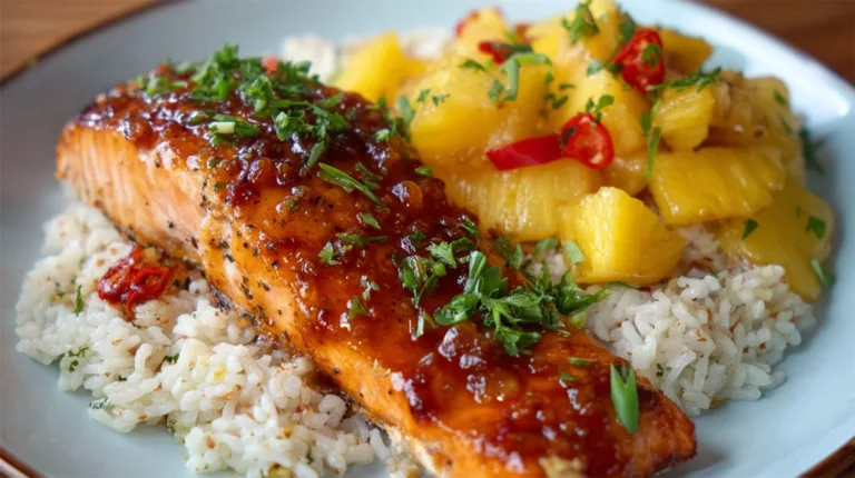 Experience the rich flavors of Easy & Delicious Pineapple Glazed Salmon Recipe for Dinner Tonight, packed with protein and fiber, perfect for your busy day.