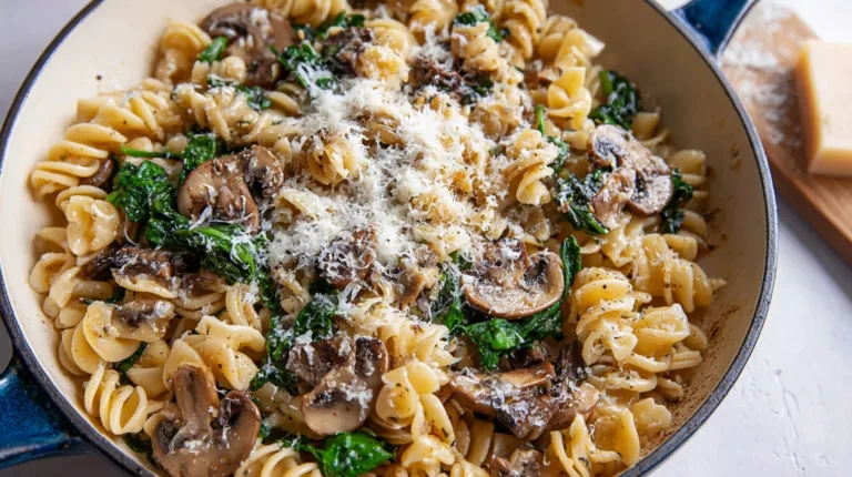 Easy One-Pot Garlic Parmesan Pasta Recipe with Spinach and Mushrooms
