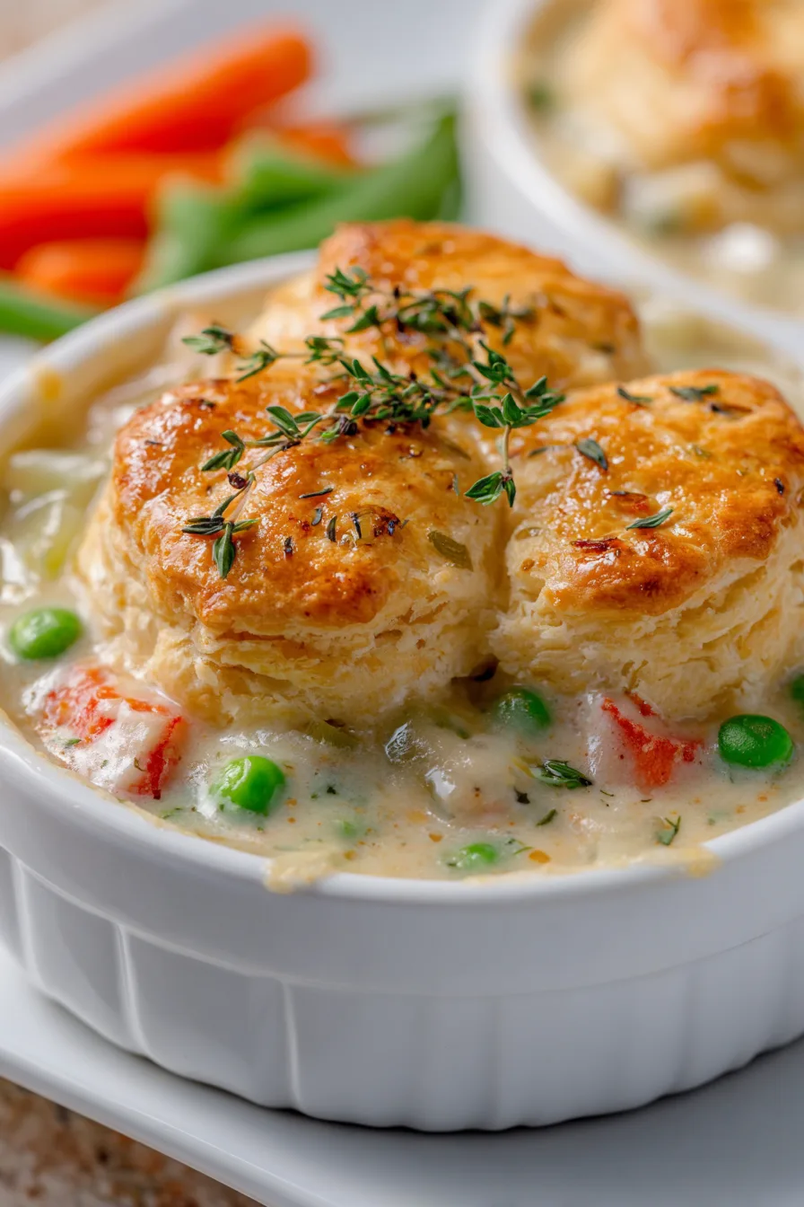 Refrigerate leftover red lobster biscuit chicken pot pie for up to 4 days in airtight containers. Reheat individual portions in 350°F oven for 15-20 minutes to restore biscuit crispness—microwaving creates soggy toppings. Freeze assembled but unbaked portions for up to 3 months; add 10-15 additional minutes to baking time when cooking from frozen. Store biscuit dough separately if meal prepping, combining just before final assembly for optimal texture retention.