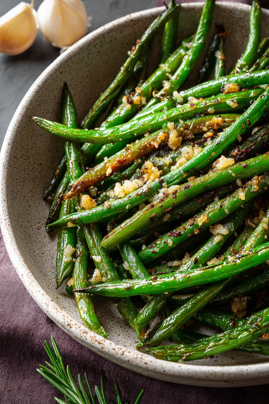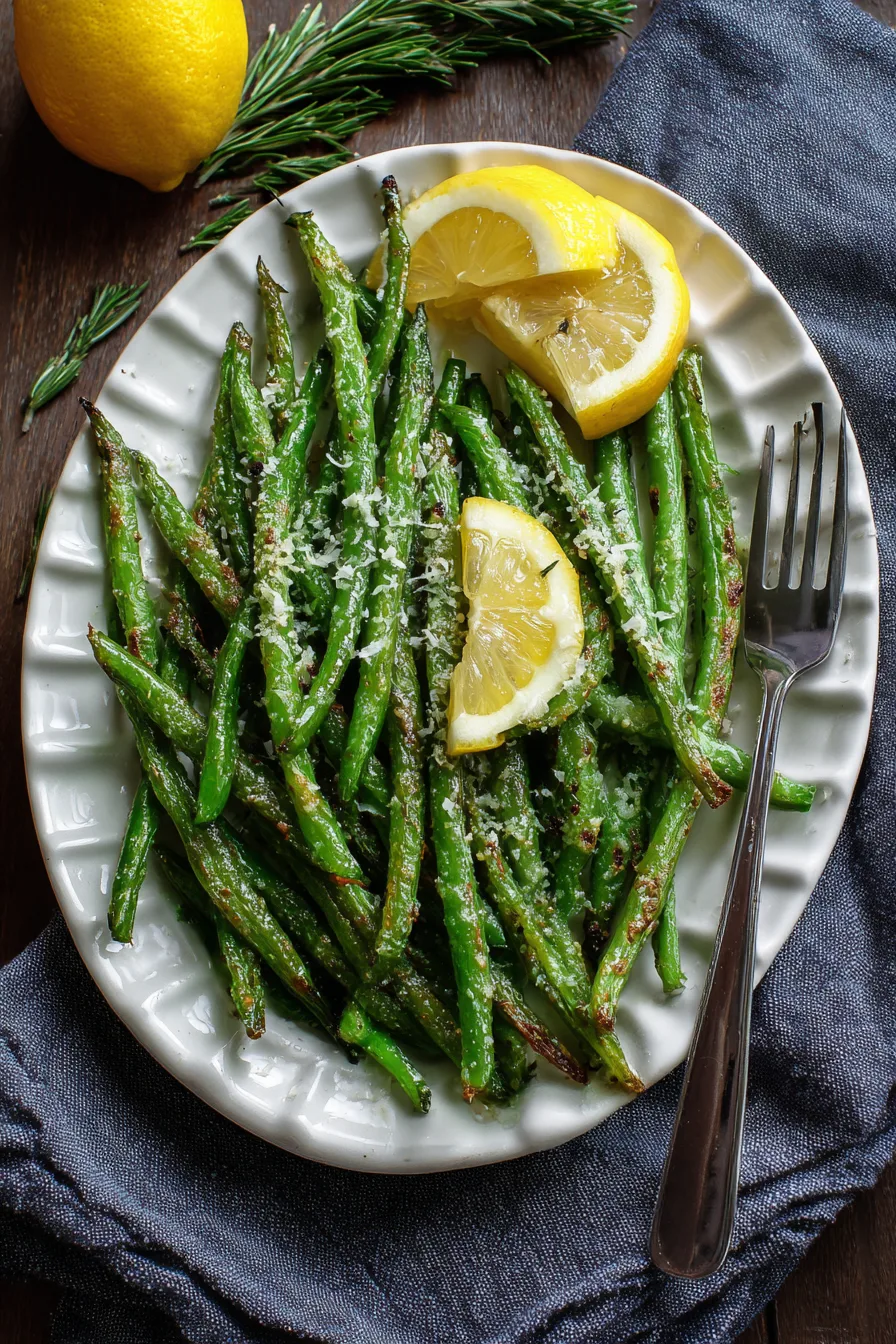 A: High heat (425°F), dry vegetables, and single-layer arrangement are key to crispy Roasted Parmesan Green Beans.