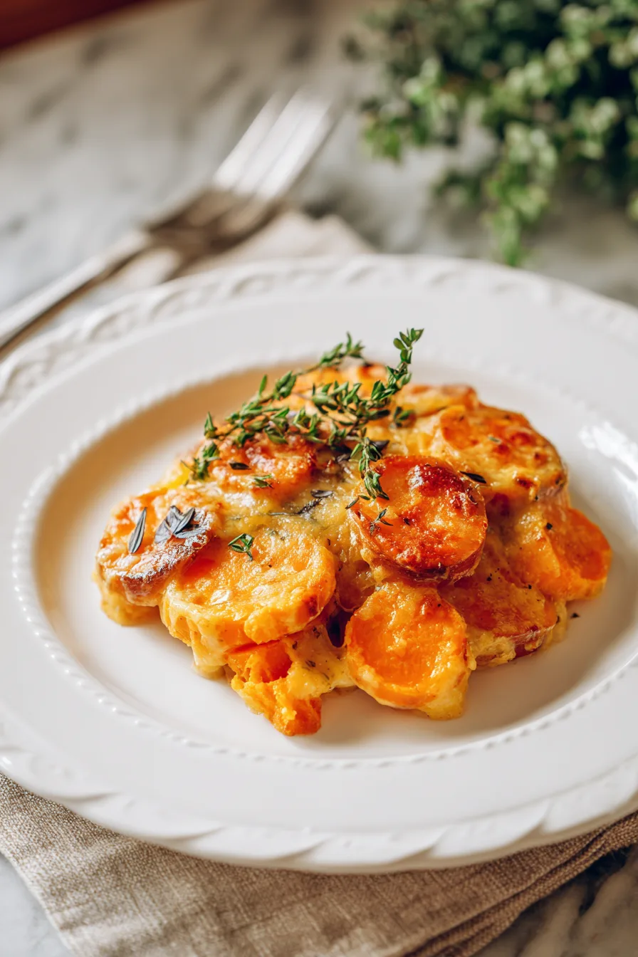 Protein-Enhanced Version: Add layers of thinly sliced lean ham or turkey between sweet potato layers, increasing protein content by 12g per serving.