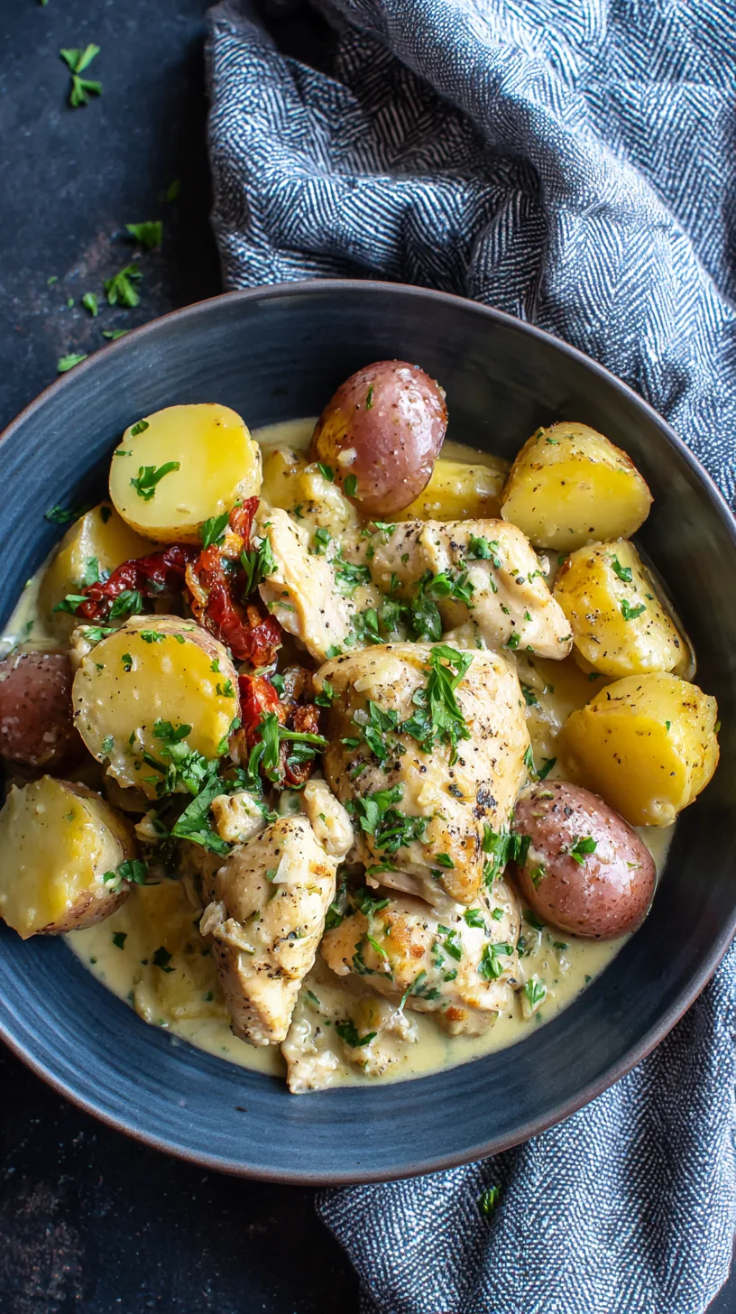 Cover and cook on low for 4 hours or high for 2.5 hours. Resist the urge to lift the lid frequently – each peek releases valuable steam and extends cooking time by 15-20 minutes. The chicken should reach an internal temperature of 165°F and the potatoes should be fork-tender.