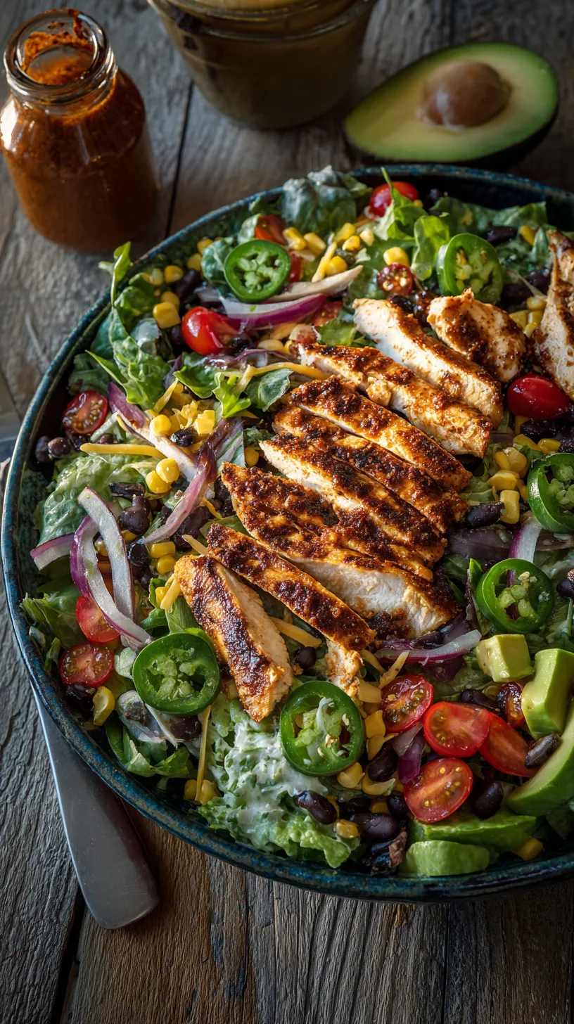 Top the salad with sliced chicken, diced avocado, and shredded cheese. Drizzle with the southwest dressing and garnish with fresh cilantro. For best results, serve immediately to maintain optimal texture and prevent avocado browning.