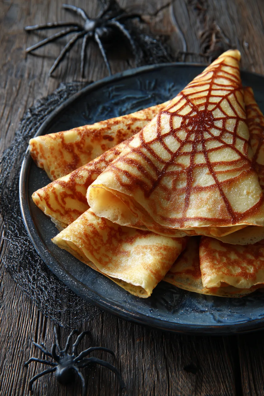 Each spiderweb crepe contains approximately 95 calories, making them a lighter alternative to traditional pancakes. The nutritional breakdown includes 4g protein, 12g carbohydrates, and 3g fat. These delicate crepes provide essential B vitamins from eggs and flour, plus calcium from milk. Compared to regular pancakes, spiderweb crepes contain a significant portion of fewer calories per serving while delivering similar nutritional benefits.