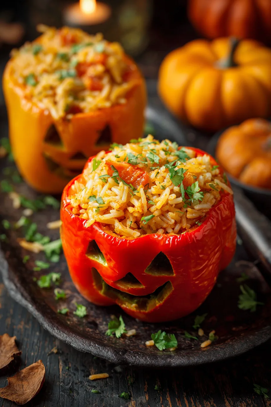 Allow peppers to rest for 5 minutes before serving – this helps the filling set properly. Garnish with fresh chopped parsley for a pop of color that complements the Halloween theme beautifully.