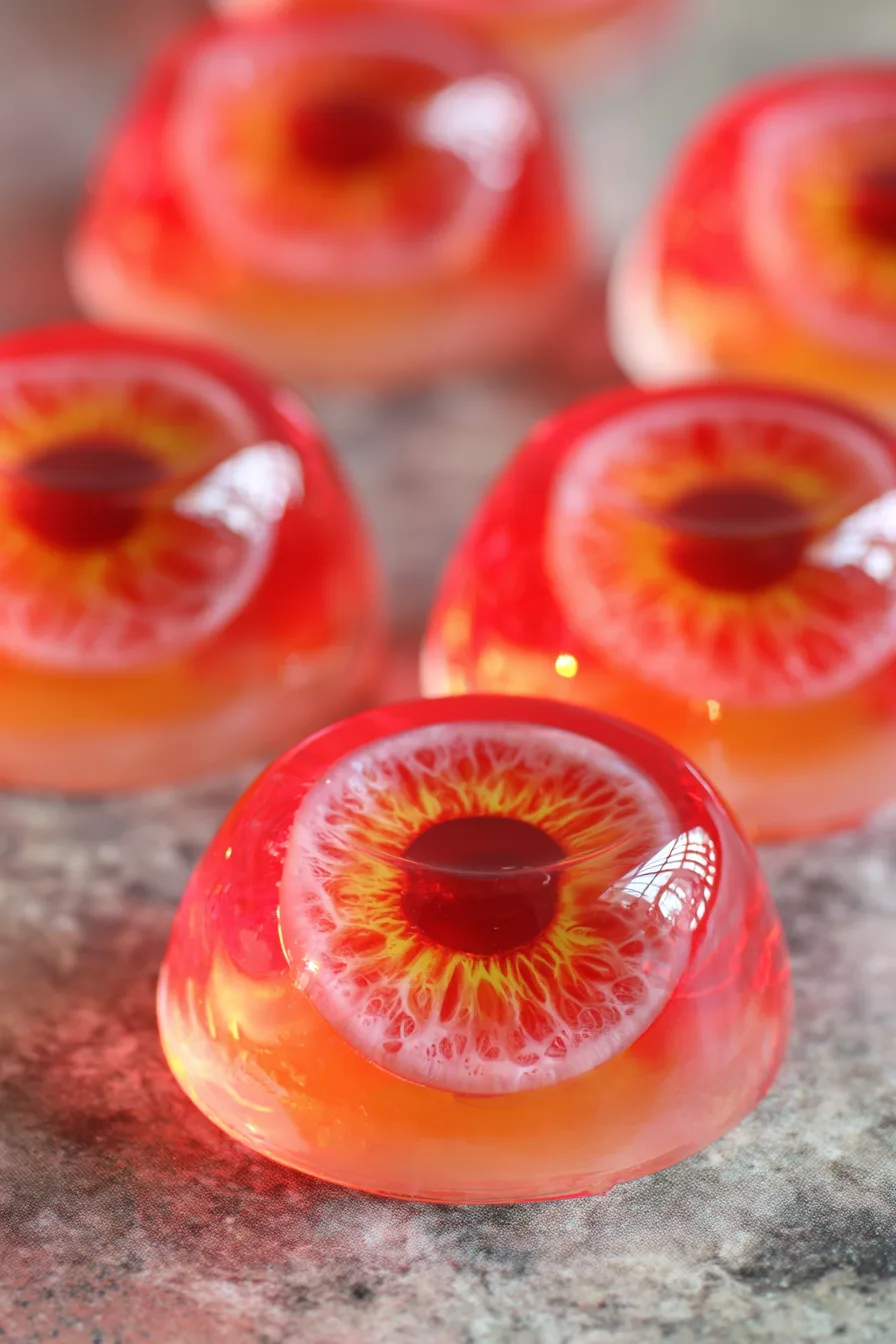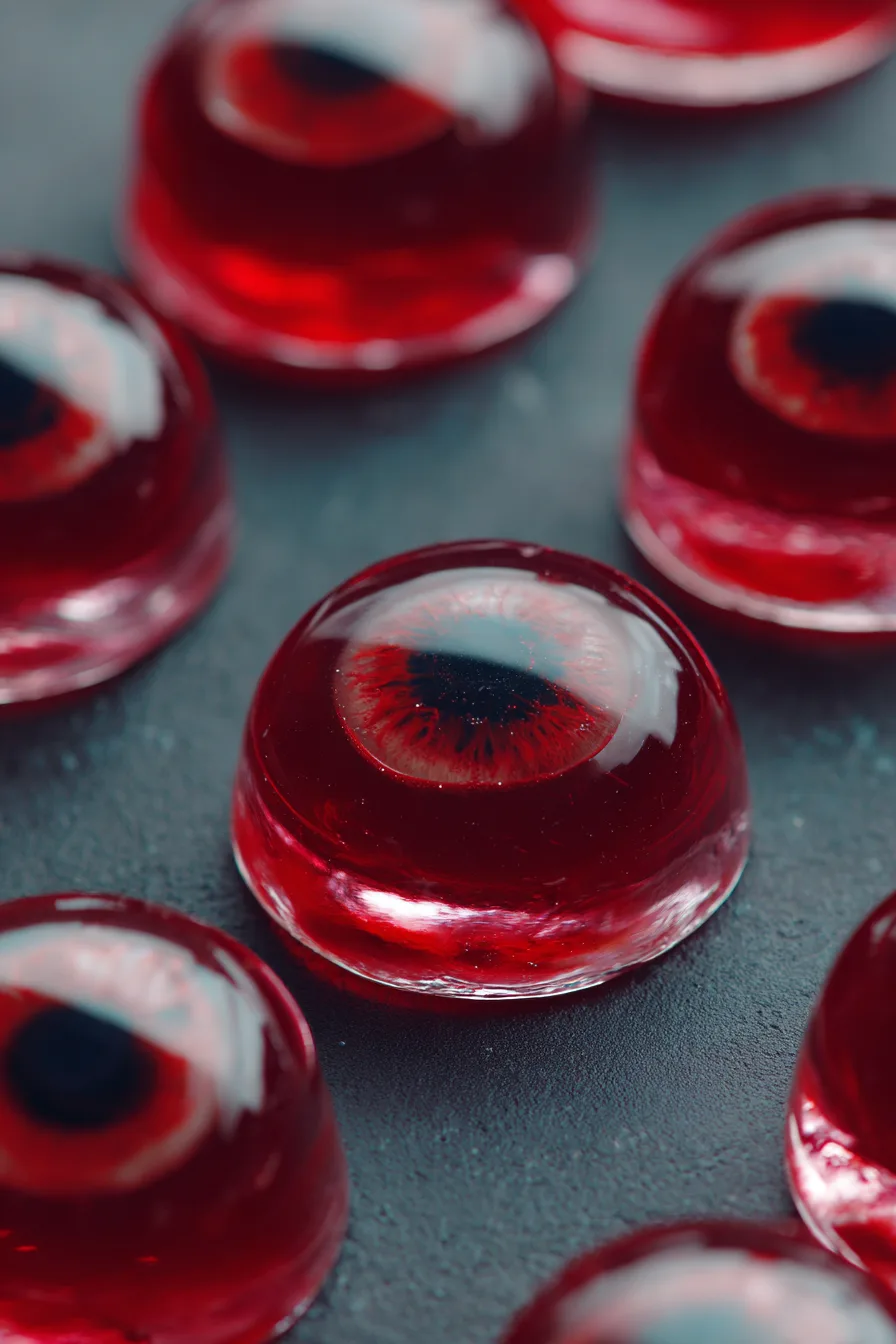 Gently press one blueberry or black olive into the center of each blue iris while the gelatin is still liquid. This creates the realistic pupil effect that makes these treats so visually striking. Refrigerate for an additional 2-3 hours until completely set.