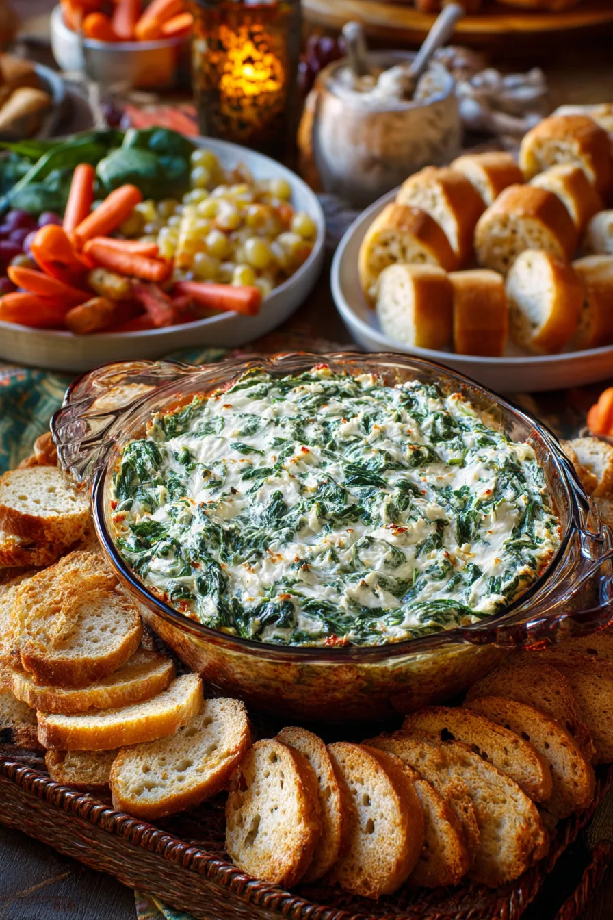 Each serving of this Spinach Dip Graveyard Scene (approximately ⅓ cup) contains 185 calories, 14g fat, 8g carbohydrates, and 6g protein. The spinach provides a significant portion of your daily vitamin K needs and nearly some of folate requirements. Despite its indulgent taste, this dip delivers significant nutritional benefits including calcium from cheese (nearly some of dv) and iron from spinach (nearly some of dv). The garlic contributes immune-boosting compounds, while the dairy components provide probiotics beneficial for digestive health.