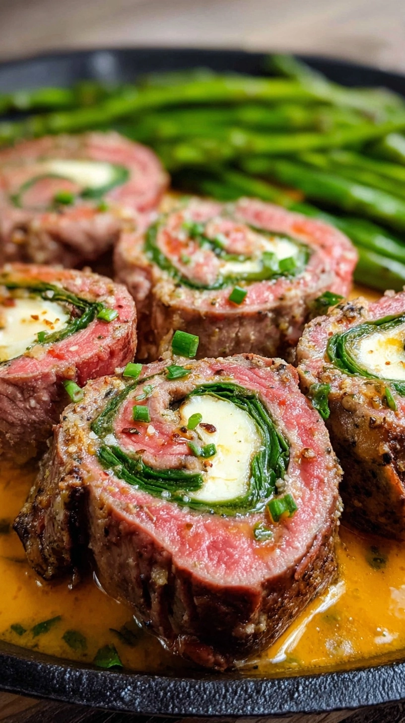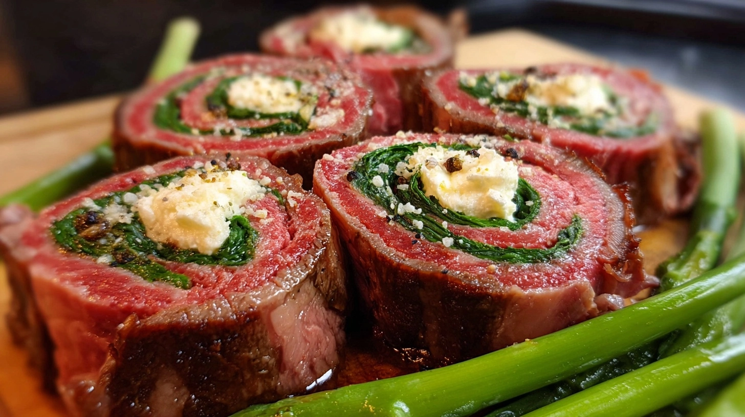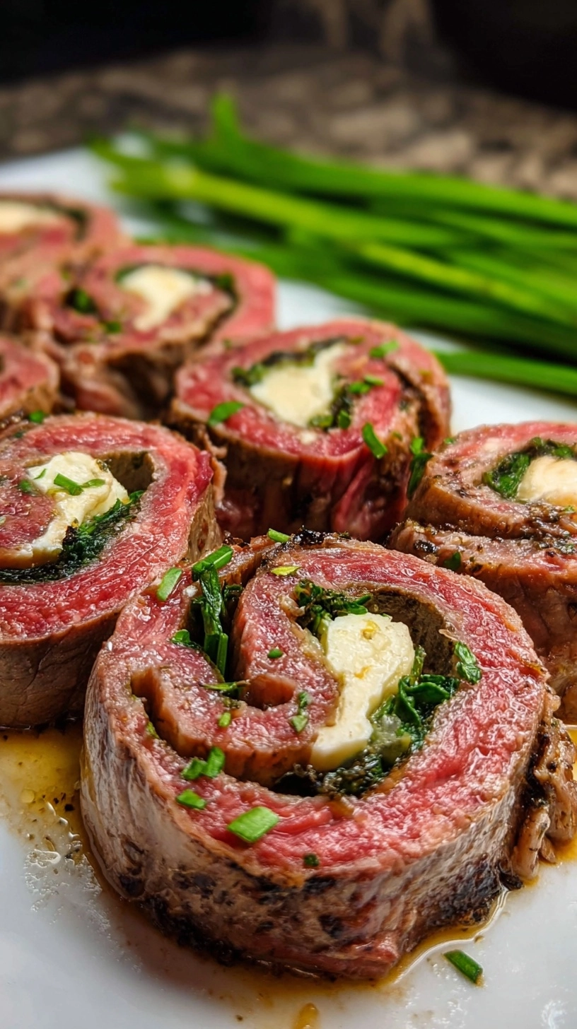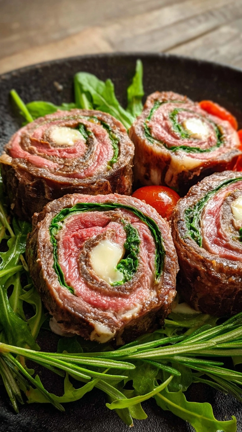 Serve steak pinwheels sliced at an angle to showcase the beautiful spiral pattern. Pair with roasted fingerling potatoes and steamed asparagus for a complete meal that’s visually stunning and nutritionally balanced.