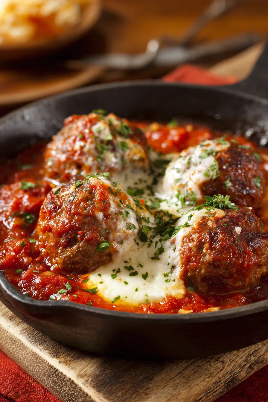 Carefully return seared meatballs to the simmering sauce. Reduce heat to low, cover, and cook for 20-25 minutes until meatballs reach an internal temperature of 165°F. The gentle braising method ensures even cooking while maintaining the integrity of the cheese filling.