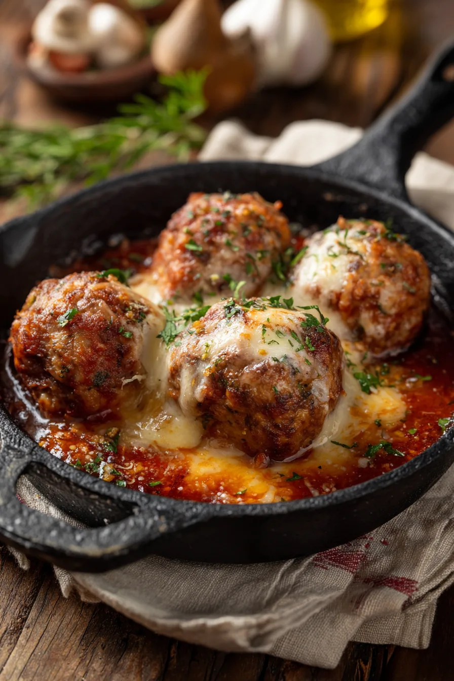Elevate your Stuffed Meatballs with Mozzarella Cheese by serving over creamy polenta for an Italian-inspired feast, or nestle them into crusty hoagie rolls with extra sauce for an unforgettable meatball sub. Pair with garlic-roasted vegetables and a crisp Caesar salad for a complete meal that satisfies all taste preferences. For entertaining, serve as appetizers with toothpicks and a selection of dipping sauces including pesto, alfredo, or spicy arrabbiata. The recipe scales beautifully for meal prep – double the batch and freeze half for future weeknight dinners.
