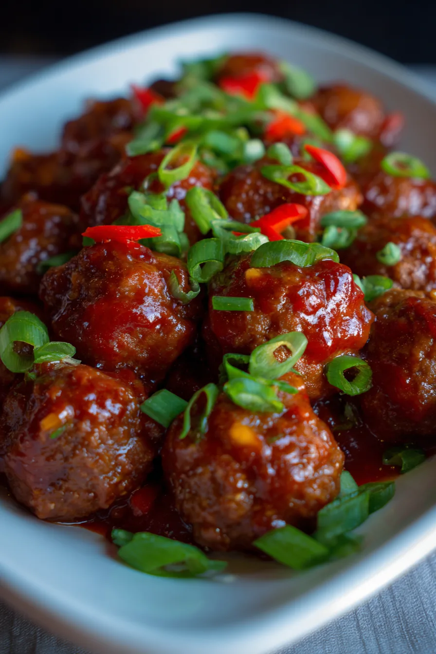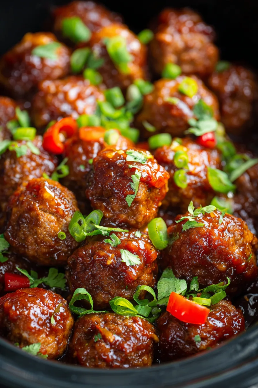 Serve these Sweet Chili Meatballs Crockpot style over jasmine rice, quinoa, or cauliflower rice for varied nutritional profiles. Create an Asian-inspired bowl with steamed broccoli, edamame, and sliced cucumbers. For entertaining, serve as appetizers with toothpicks alongside a fresh herb salad. The versatile flavor profile pairs excellently with coconut rice or Asian-style coleslaw for textural contrast.
