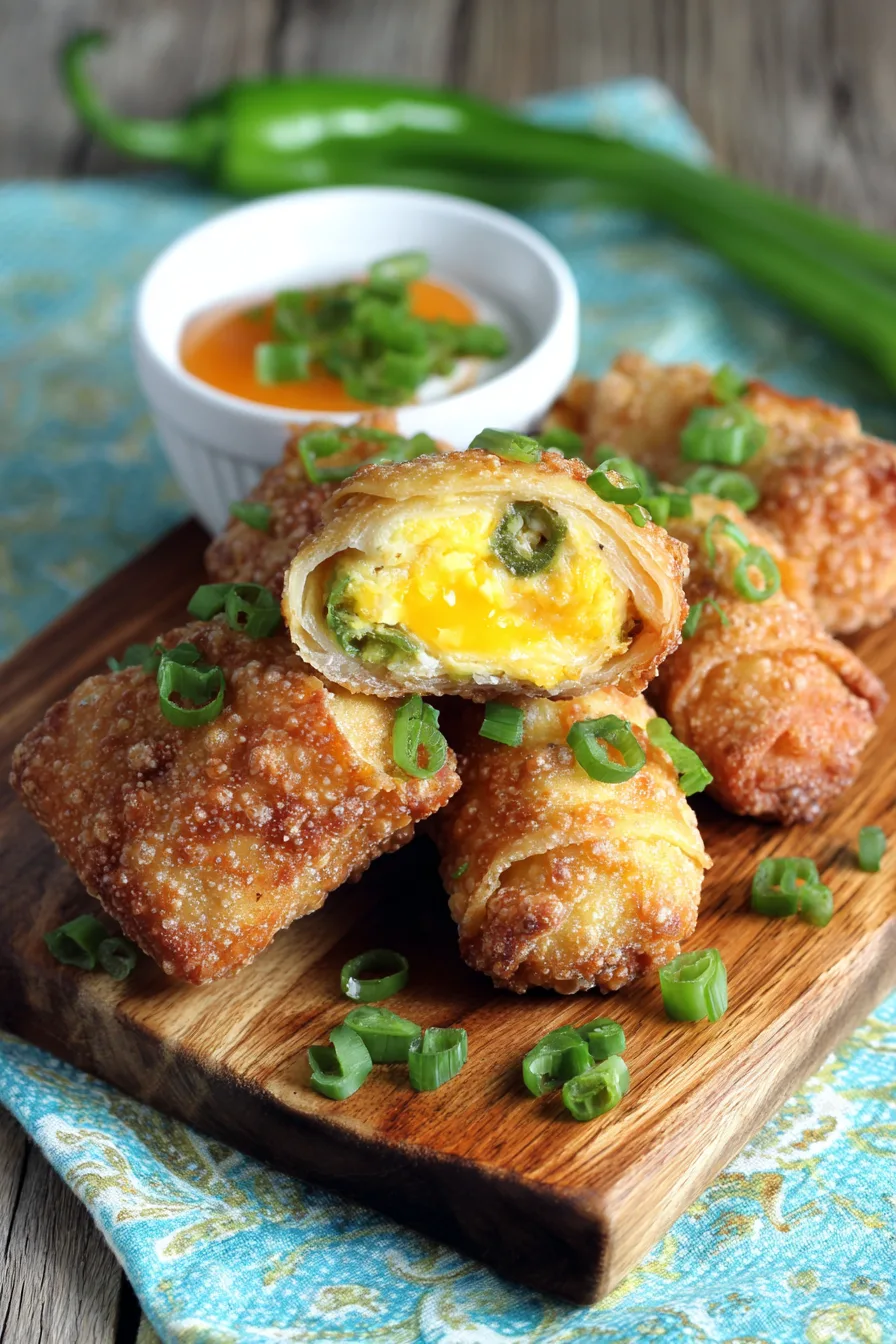 Transform these Tasty Finger Food Mini Jalapeño Popper Egg Rolls into a more nutritious option by air frying at 375°F for 8-10 minutes, reducing oil content by most. Substitute half the cream cheese with ricotta for added protein and calcium. For a plant-based version, use cashew cream cheese and nutritional yeast instead of dairy cheese, plus crispy shiitake mushrooms in place of bacon.