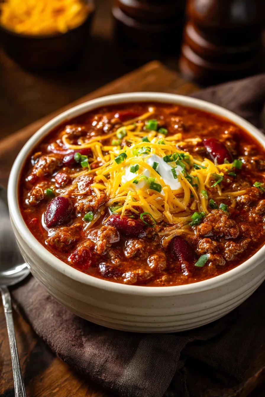 Stir in brown sugar and apple cider vinegar during the last 5 minutes of cooking. These ingredients balance acidity and add subtle complexity that distinguishes restaurant-quality chili from homemade versions.